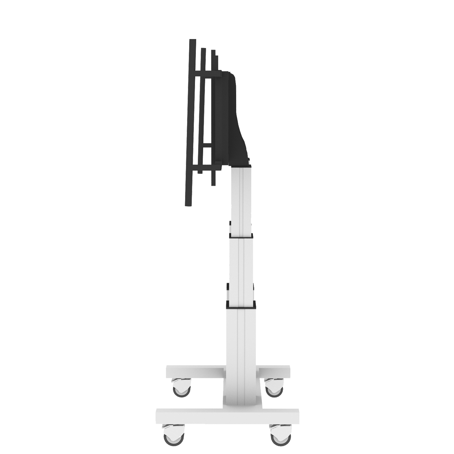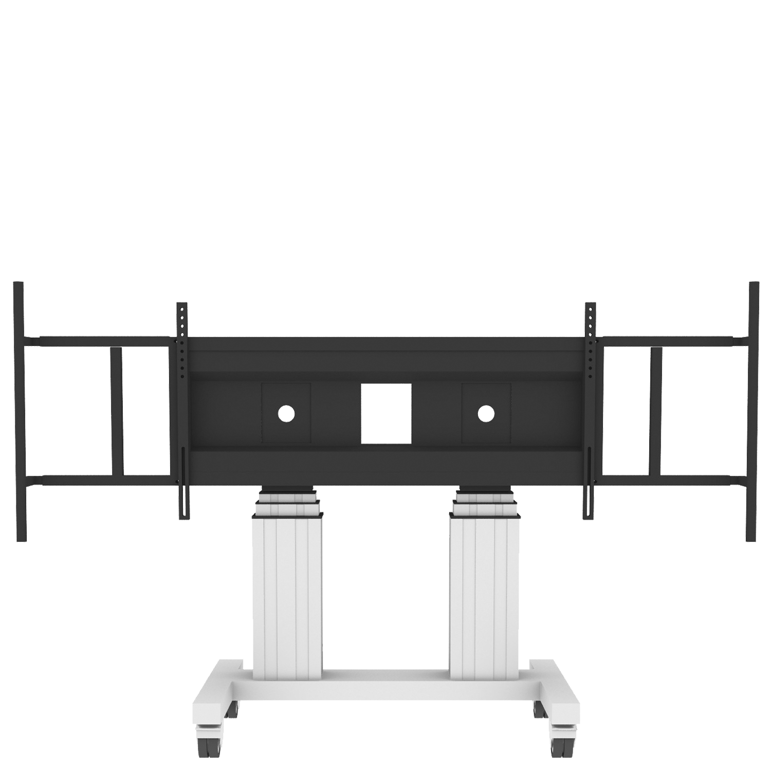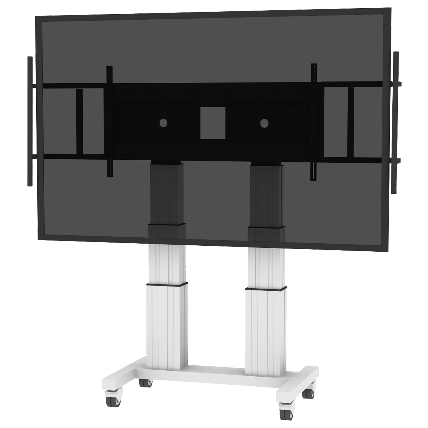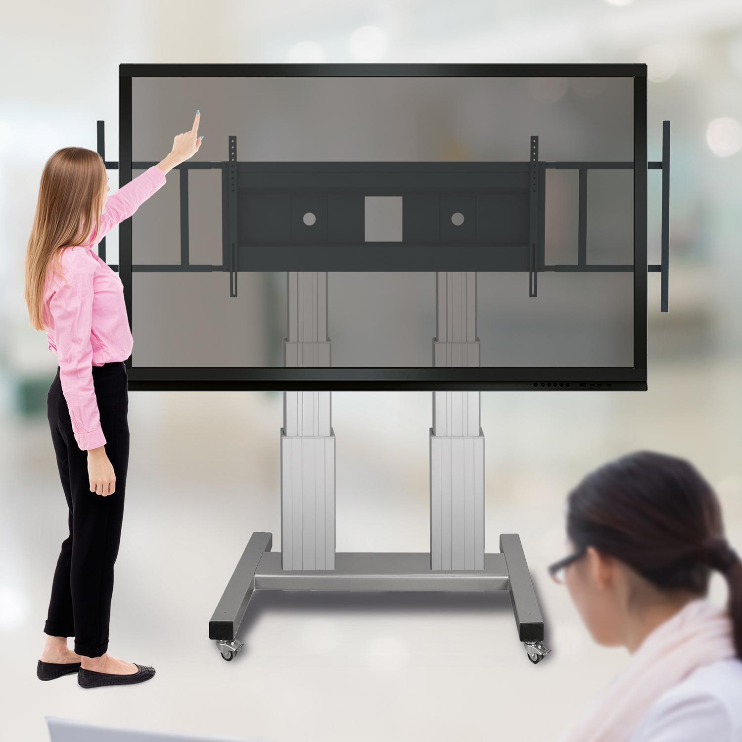 Elektrisch in hoogte verstelbare verrijdbare tv standaard met XL-frame voor het plaatsen van displays. De verrijdbare tv standaard is ontworpen voor gebruik met interactieve touchscreen-monitoren. De elektrisch in hoogte verstelbare trolley wordt geleverd met een extra brede displayhouder. De mobiele monitorstandaard is voorzien van twee 3-delige mastkolommen met een hoogteverstelling van 70 cm. 2 handgrepen inbegrepen. Het product wordt gedemonteerd geleverd en kan per pakketdienst worden verzonden.