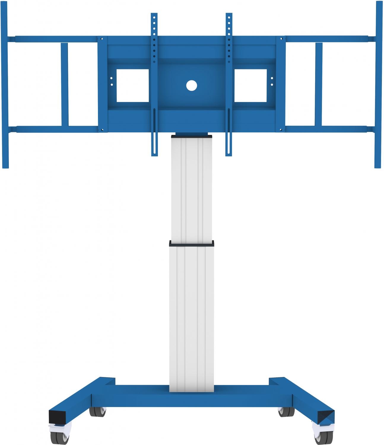 Elektrisch in hoogte verstelbare mobiele monitorstandaard Jolli in blauw met 50 cm slag