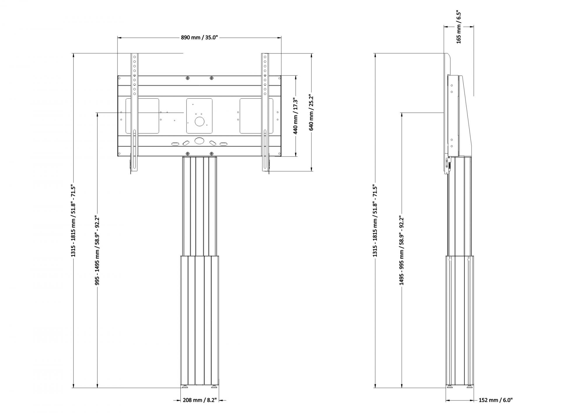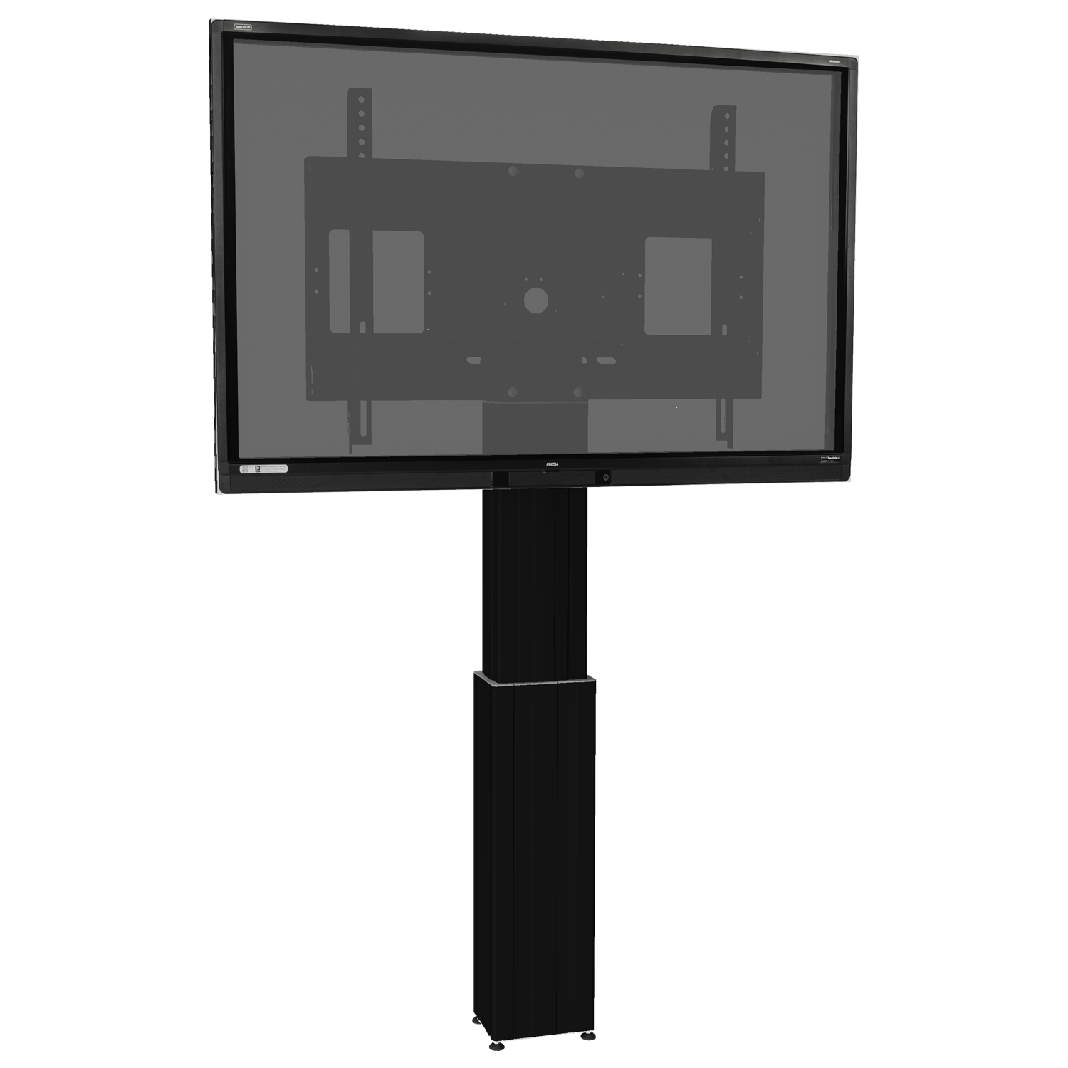 Elektrisch in hoogte verstelbare TV standaard; monitor muurbeugel voor 42"-100" (interactieve) flat panel displays. De SCETAWLBK is geschikt voor displays met een schermdiagonaal tot 100". Het systeem omvat een stabiel frame voor het plaatsen van het display met geïntegreerd kabelbeheer en twee ophangrails met snelsluitingen voor een snelle en eenvoudige montage van het display. De SCETAWLBK-wand montage wordt geleverd met een mastkolom met 50 cm naaf Het systeem wordt in twee pakketten gedemonteerd geleverd en kan per koeriersdienst worden verzonden.