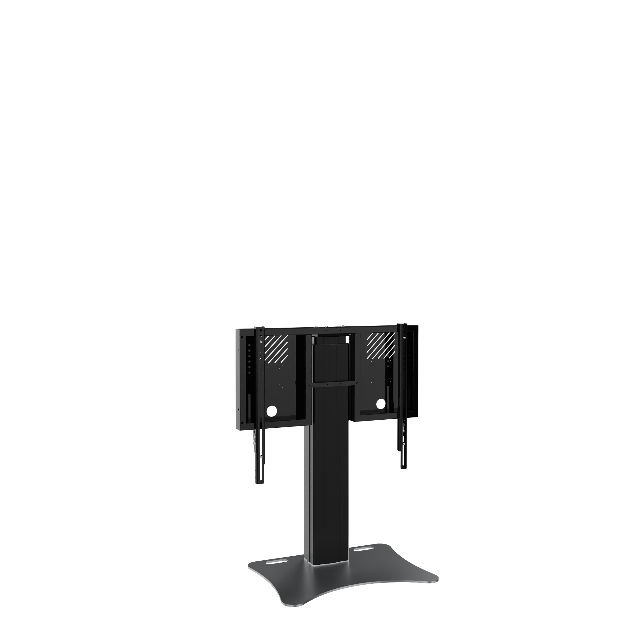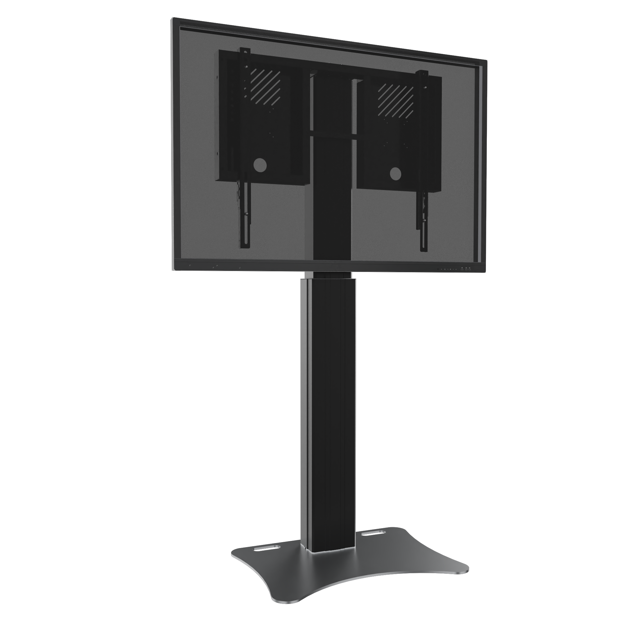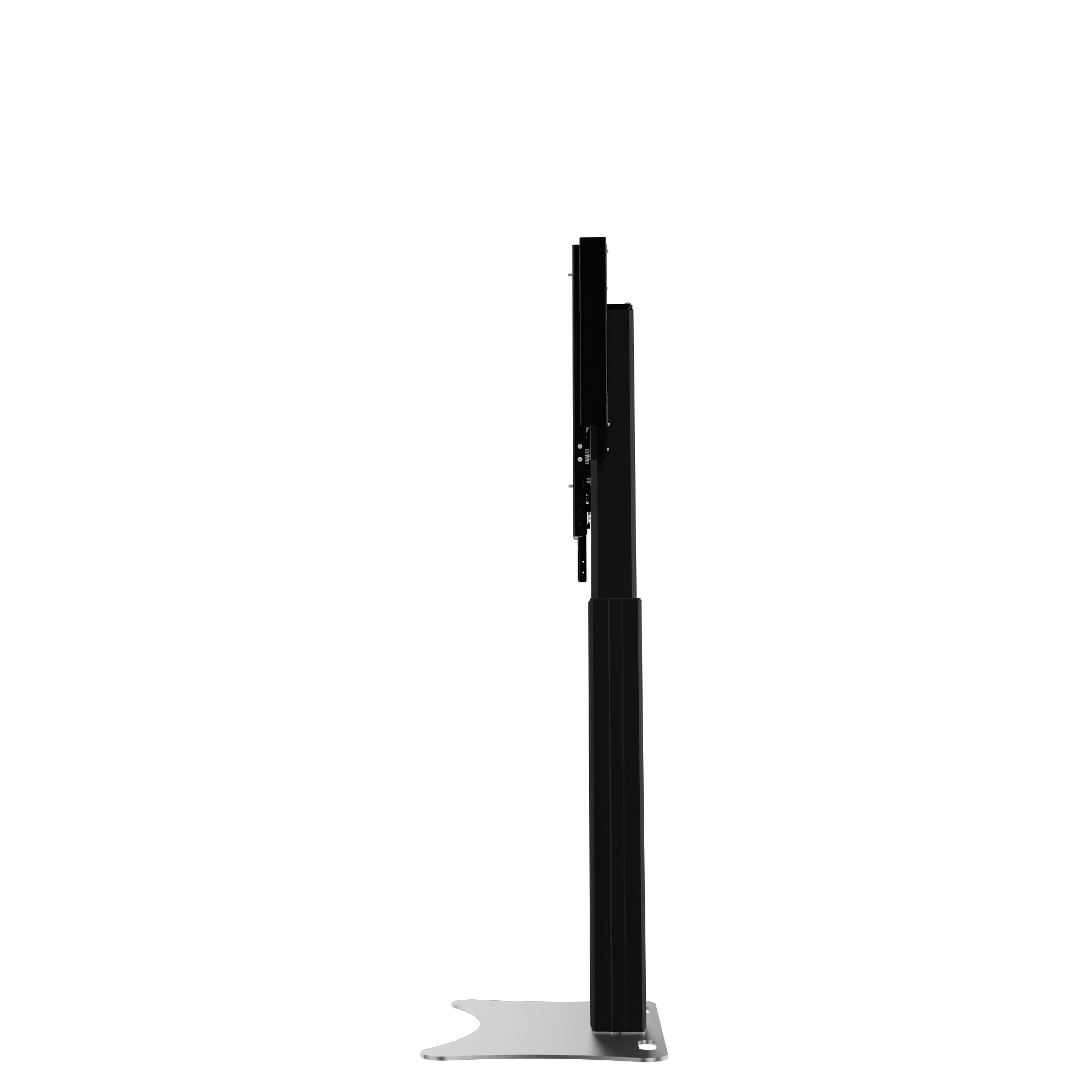 Elektrisch in hoogte verstelbare monitorsteun voor 42"-86" touchscreen monitoren. De monitorstandaard RLI10070PBK is geschikt voor touchscreen-monitoren met een schermdiagonaal tot 86". Het systeem omvat een stabiel frame voor de bevestiging van de monitor met geïntegreerd kabelbeheer en twee ophangrails met snelsluitingen voor een snelle en eenvoudige montage van de monitor. De monitorstandaard RLI10070PBK wordt geleverd met een slanke hefkolom met een slag van 70 cm. Onder de mastkolom wordt een 8 mm dikke stalen plaat bevestigd. Het systeem kan vrijstaand in de ruimte worden geplaatst of aan een lichtgewicht wand worden gemonteerd. Uitsparingen/handgrepen in de basisplaat vergemakkelijkt het hanteren.De plaat is van kunststof gepoedercoat in zwart.Het systeem wordt gedemonteerd in drie pakketten geleverd en kan per koeriersdienst worden verzonden.