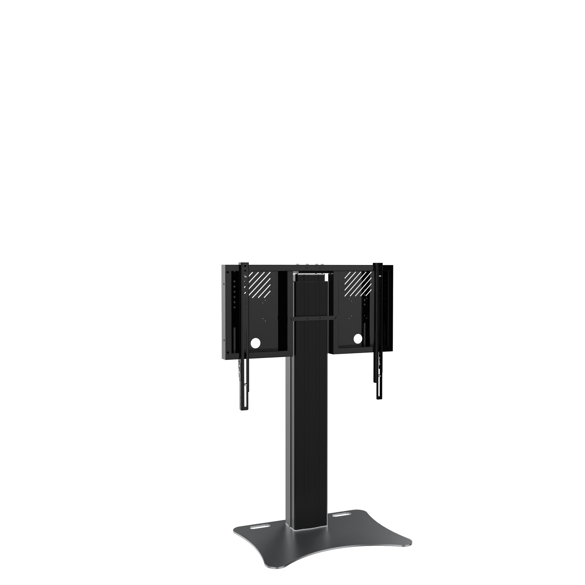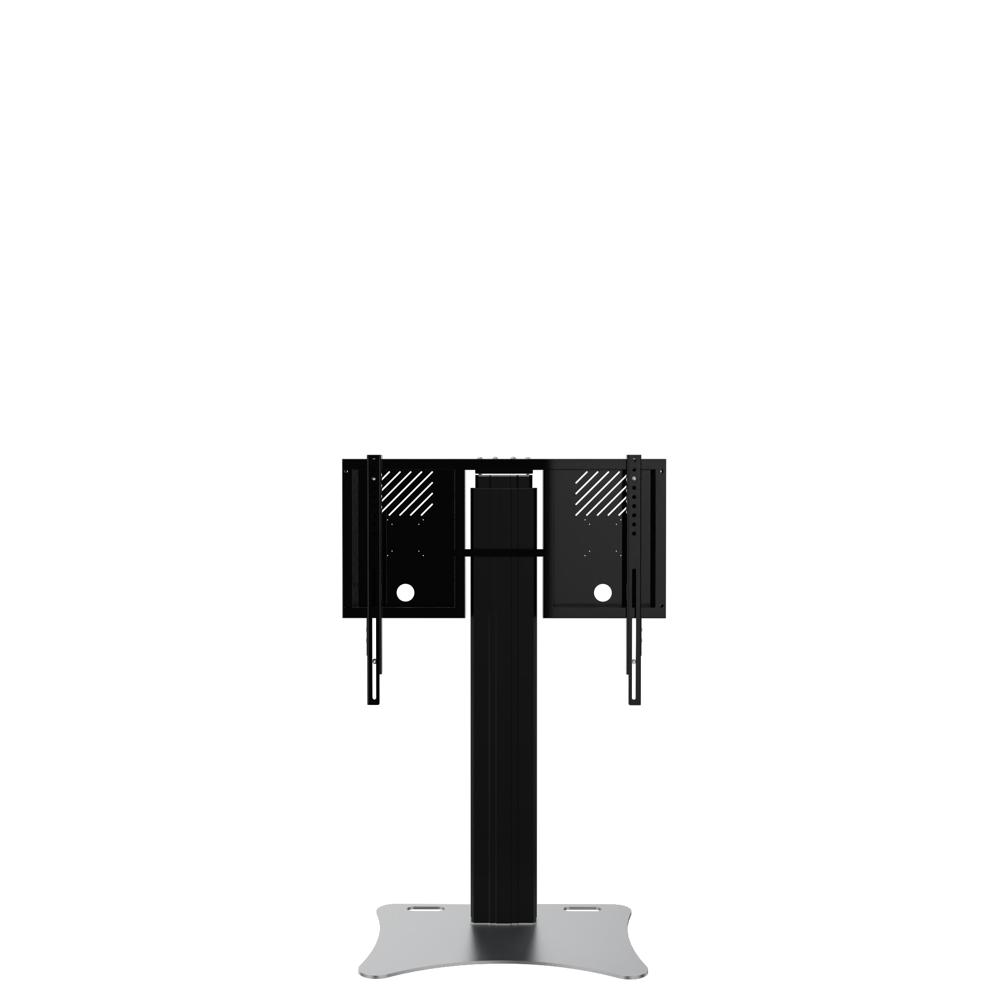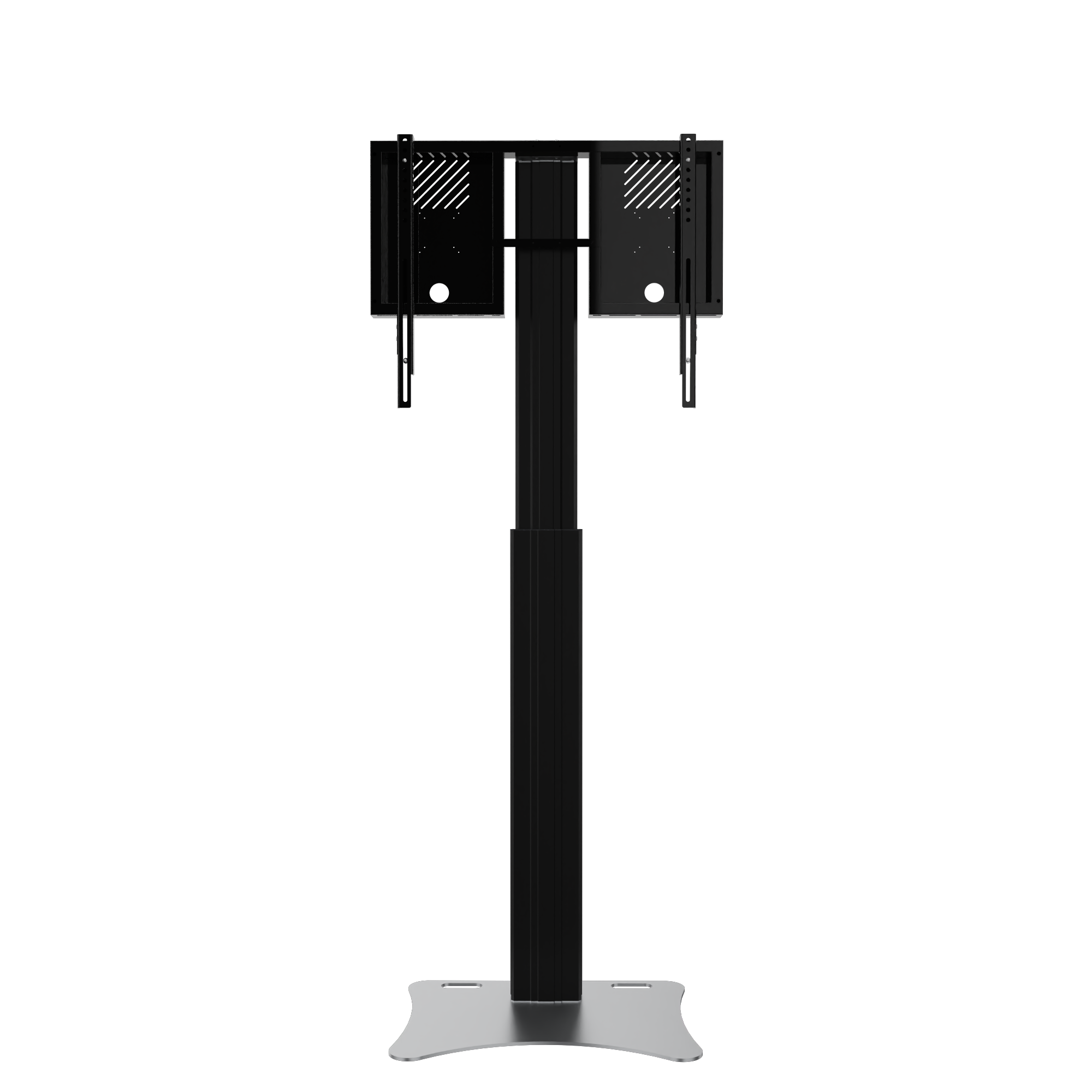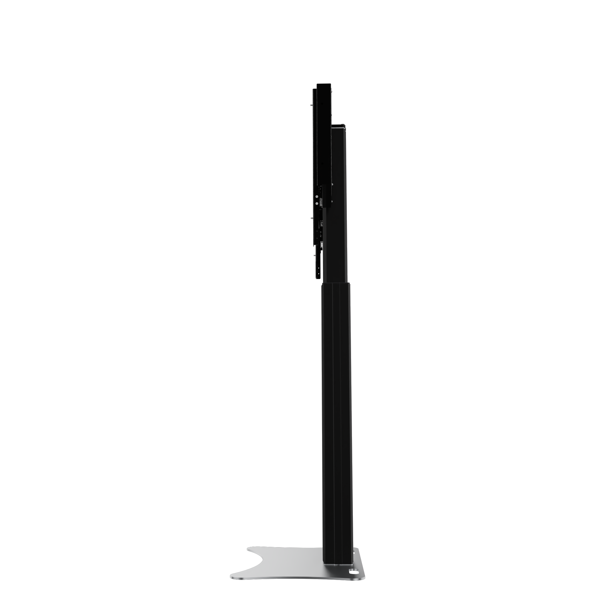 Elektrisch in hoogte verstelbare monitorstandaard en monitorbeugel voor 42"-86" touchscreen monitoren. De monitorstandaard RLI12090PBK is geschikt voor touchscreen-monitoren met een schermdiagonaal van maximaal 86". Het systeem omvat een stabiel frame voor de bevestiging van de monitor met geïntegreerd kabelbeheer en twee ophangrails met snelsluitingen voor een snelle en eenvoudige montage van de monitor. De monitorstandaard RLI12090PBK wordt geleverd met een slanke hefkolom met een uitstekende slag van 90 cm. Onder de mastkolom is een 8 mm dikke stalen plaat bevestigd. Het systeem kan vrijstaand in de ruimte worden geplaatst of aan een lichtgewicht wand worden gemonteerd. Uitsparingen/ handgrepen in de bodemplaat vergemakkelijken het hanteren.De plaat is van kunststof gepoedercoat in zwart.Het systeem wordt gedemonteerd in drie pakketten geleverd en kan per koeriersdienst worden verzonden.