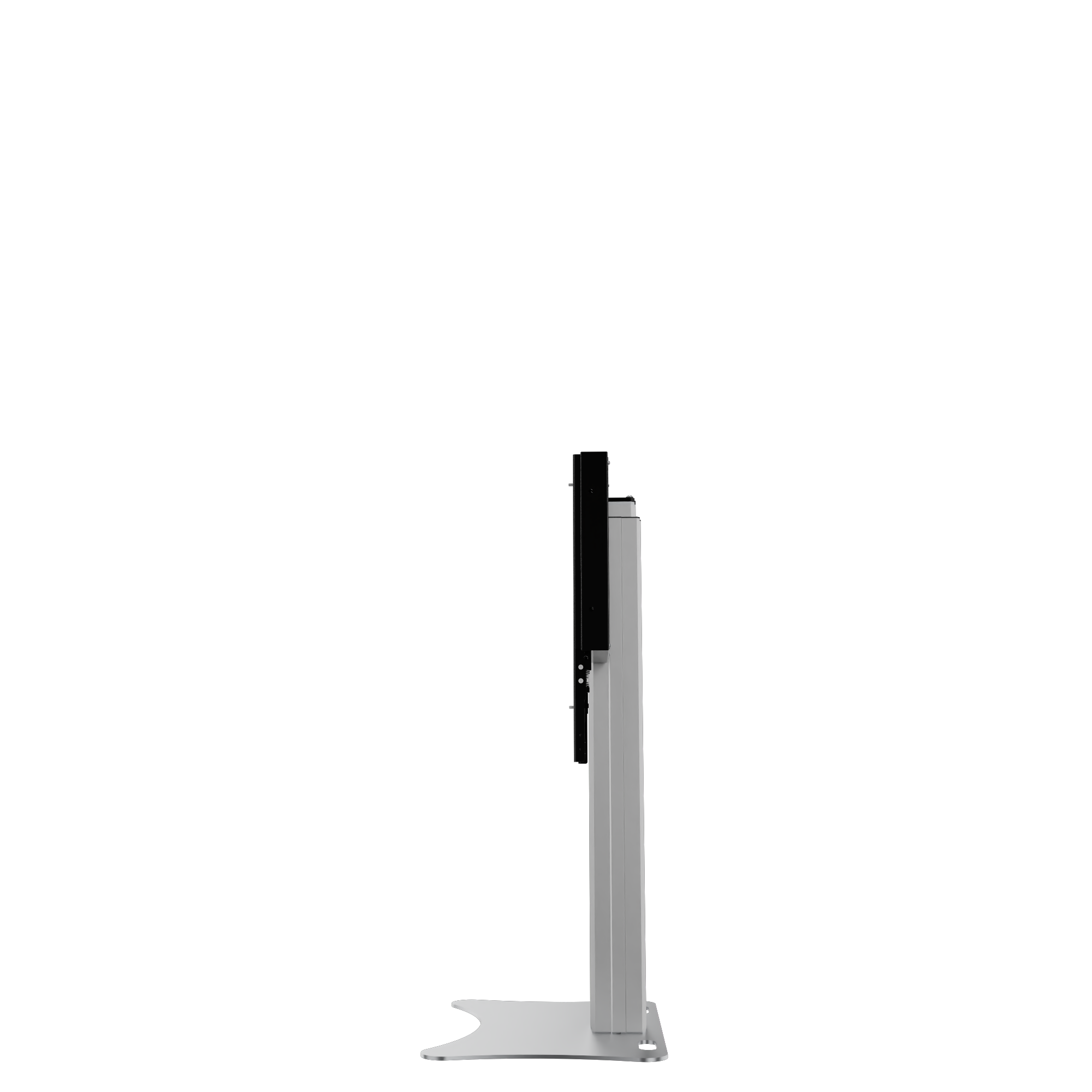 Elektrisch in hoogte verstelbare monitorstandaard en monitorbeugel voor 42"-86" touchscreen monitoren. De RLI12090PK is geschikt voor monitoren met een schermdiagonaal tot 86". Het systeem omvat een stabiel frame voor het plaatsen van de monitor met geïntegreerd kabelbeheer en twee ophangrails met snelsluitingen voor een snelle en eenvoudige montage van de monitor. De RLI12090PK-monitor standaard wordt geleverd met een slanke hefkolom uitstekende slag van 90 cm Onder de mastkolom is een 8 mm dikke stalen plaat bevestigd Het systeem kan vrijstaand in de ruimte worden geplaatst of aan een lichtgewicht wand worden gemonteerd Uitsparingen/handgrepen in de voetplaat vergemakkelijken De plaat is van kunststof gepoedercoat in wit aluminium.Het systeem wordt gedemonteerd in drie pakketten geleverd en kan per koeriersdienst worden verzonden.