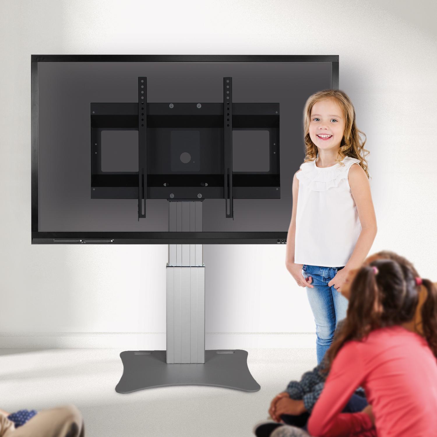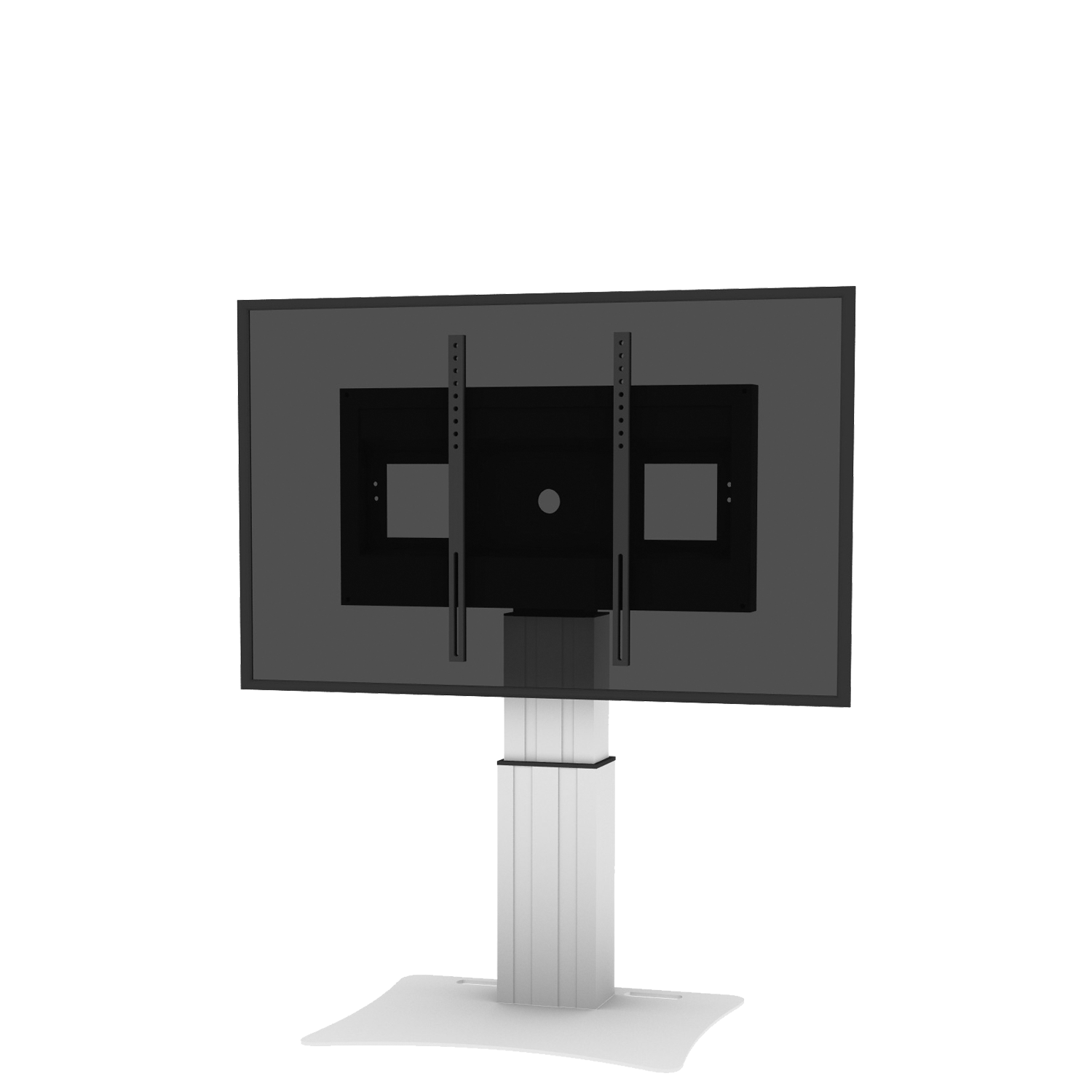 Elektrisch in hoogte verstelbare monitorstandaard voor 42"-100" (interactieve) flat panel displays. Geschikt voor wandmontage. De SCETAP28 is geschikt voor beeldschermen met een schermdiagonaal tot 100". Het systeem omvat een stabiel frame voor het plaatsen van het beeldscherm met geïntegreerd kabelbeheer en twee ophangrails met snelsluitingen voor een snelle en eenvoudige montage van het beeldscherm. De SCETAP28-monitor standaard wordt geleverd met een pyloonzuil met een slag van 28 cm Onder de pyloonzuil wordt een 8 mm dikke stalen plaat bevestigd Het systeem kan vrijstaand in de ruimte worden geplaatst of aan een lichtgewicht wand worden gemonteerd Uitsparingen/handgrepen in de voetplaat maken gemakkelijker te hanteren.De plaat is van kunststof gepoedercoat in wit aluminium.Het systeem wordt in drie pakketten gedemonteerd geleverd en kan per koeriersdienst worden verzonden.