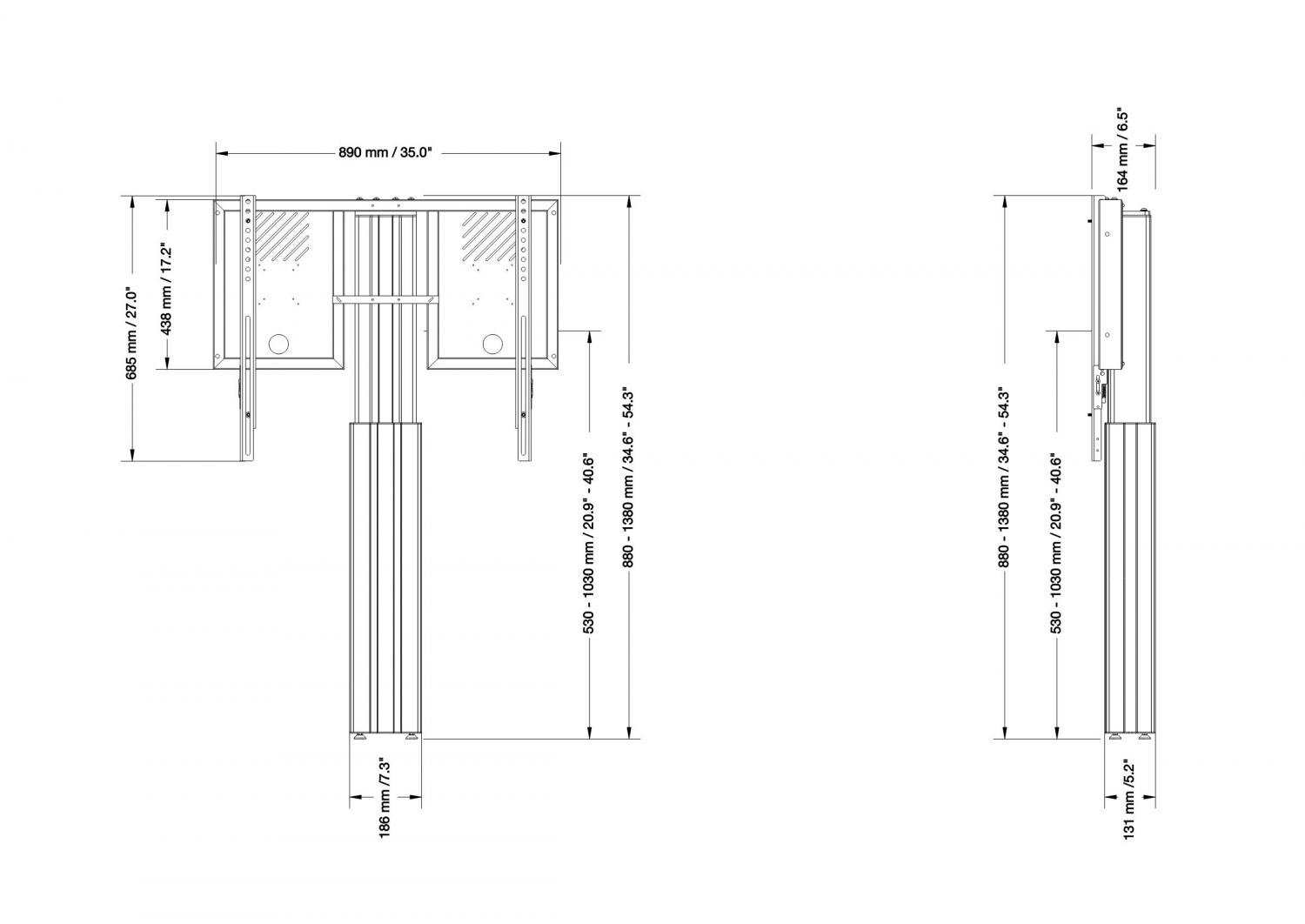 Elektrisch in hoogte verstelbare TV en monitor muurbeugel, Lite serie met 50 cm slag