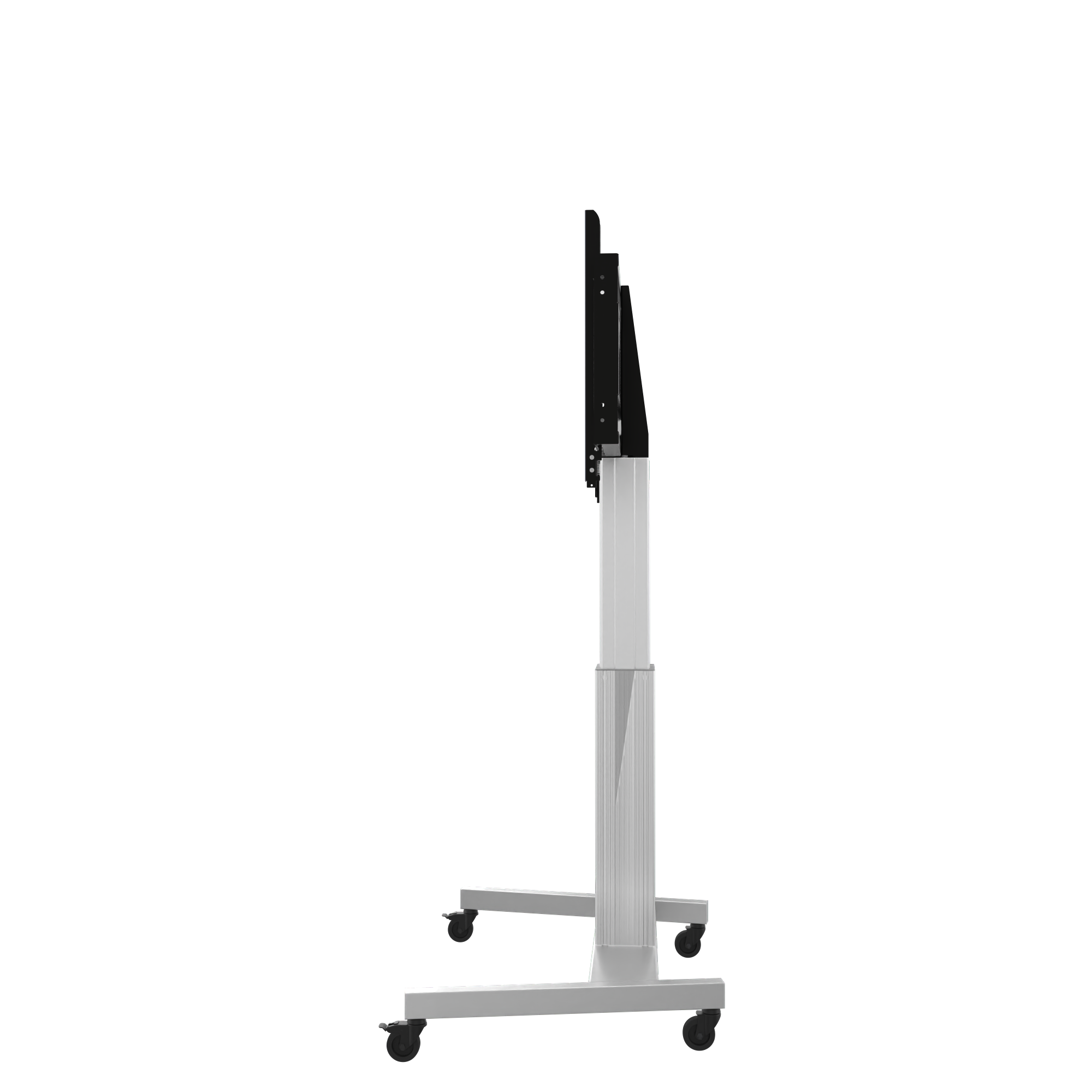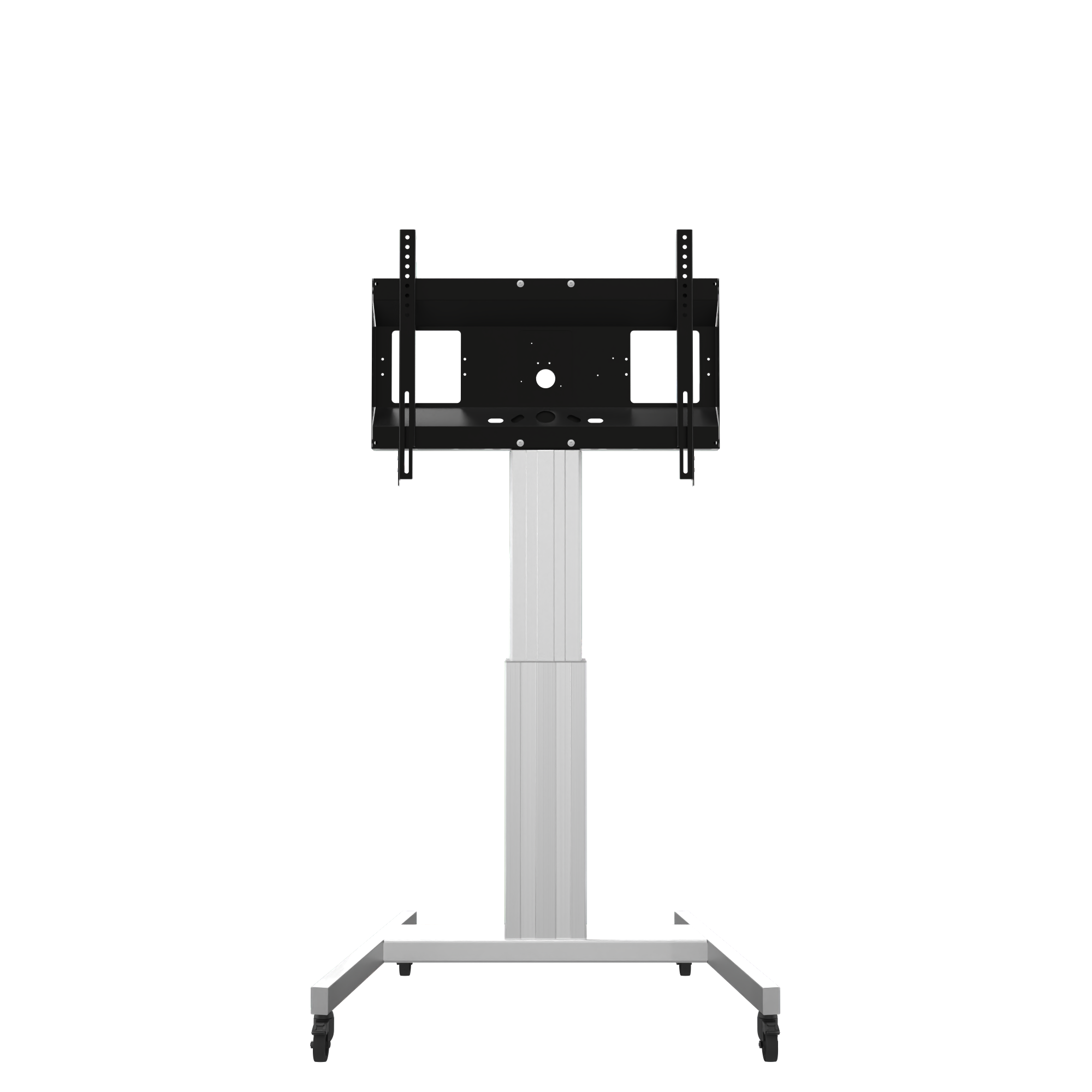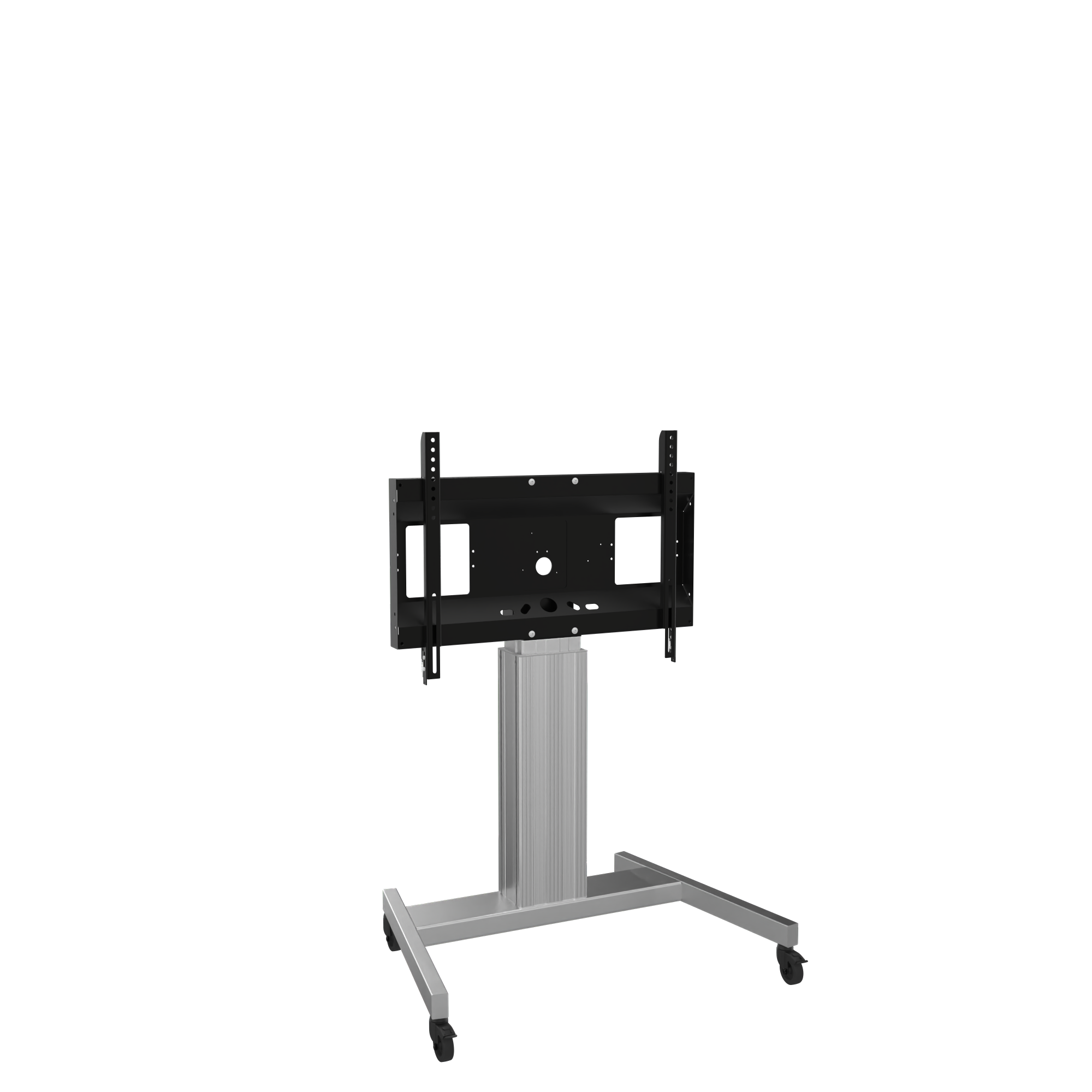 Elektrisch in hoogte verstelbare tv-trolley, verrijdbaar met V-voet, zilver