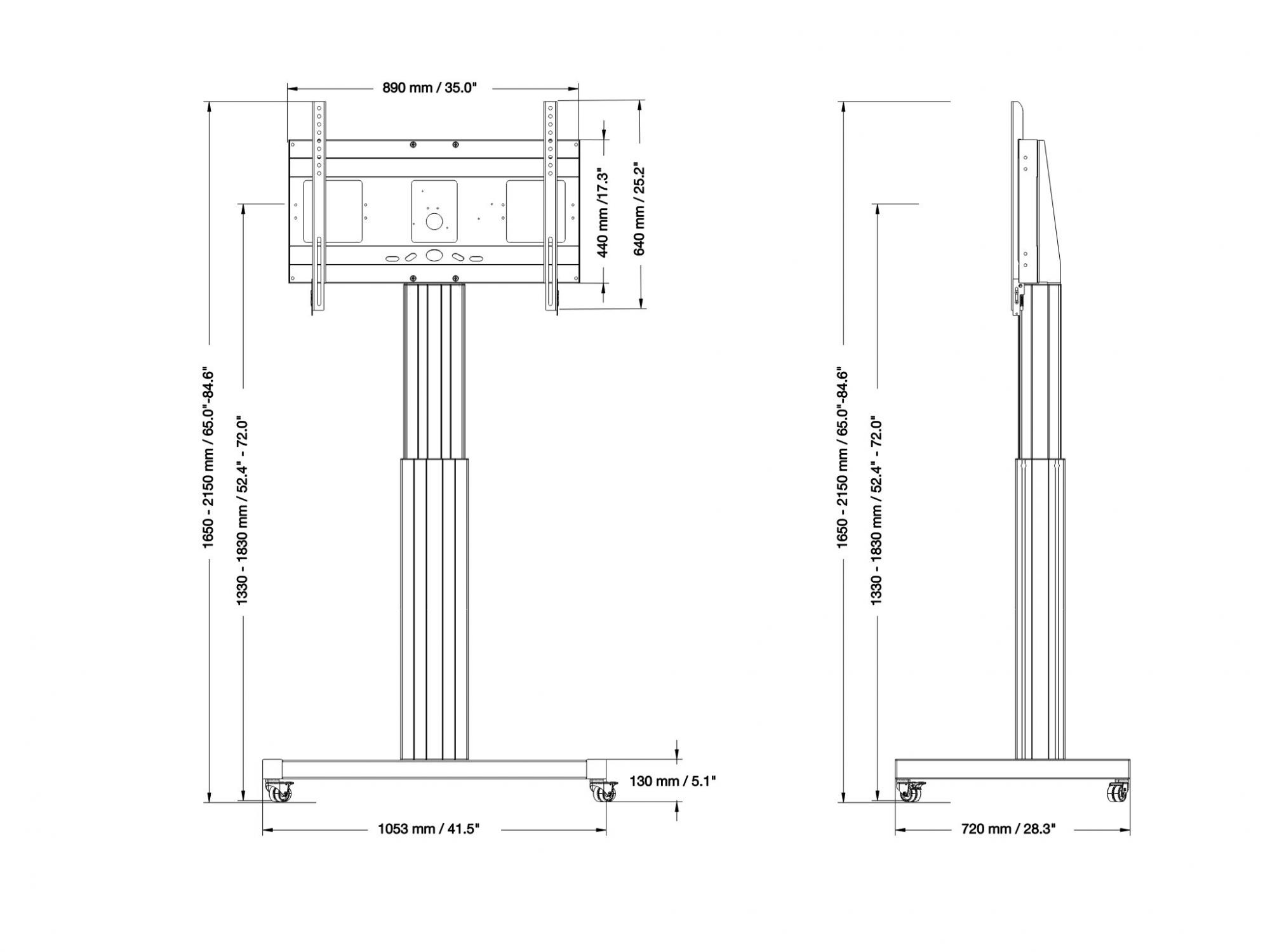 Elektrisch in hoogte verstelbare mobiele monitorstandaard standaard; tv-trolley geschikt voor gebruik met alle touchscreen monitoren van 42"-100" schermdiagonaal. De mobiele monitorstandaard SCETAXL staat bekend om zijn stabiliteit en veelzijdigheid en is al jaren een van de wereldwijde bestsellers van Conen Mounts. De monitorstandaard is ontworpen voor intensief dagelijks gebruik en voor het stevig vasthouden van touchscreen-displays met een schermgrootte tot 100" of 136 kg. Het SCETAXL mobiele montagesysteem is uitgerust met een centrale mastkolom en een 50 cm-hub. De mogelijkheid om tal van accessoires zoals pc-planken, transporthandgrepen en zijvleugels voor whiteboards dragen ook bij aan het vergroten van de gebruiksvriendelijkheid en het verbeteren van de gebruiksmogelijkheden in de trainingsruimte. Het product wordt gedemonteerd geleverd in drie pakketten. Alle verpakkingseenheden zijn geschikt voor pakketdienst.