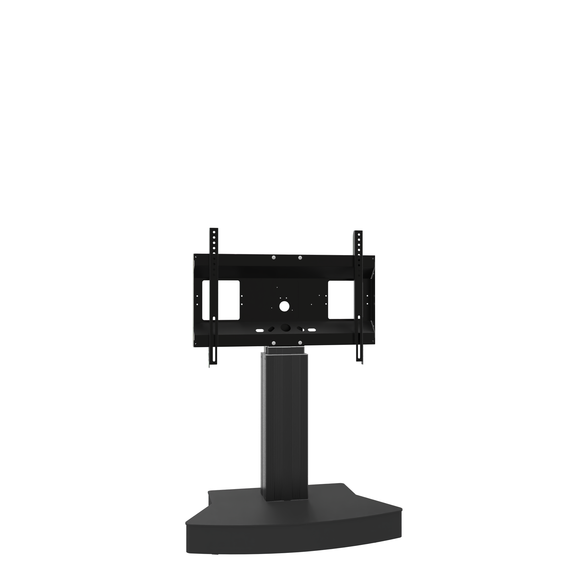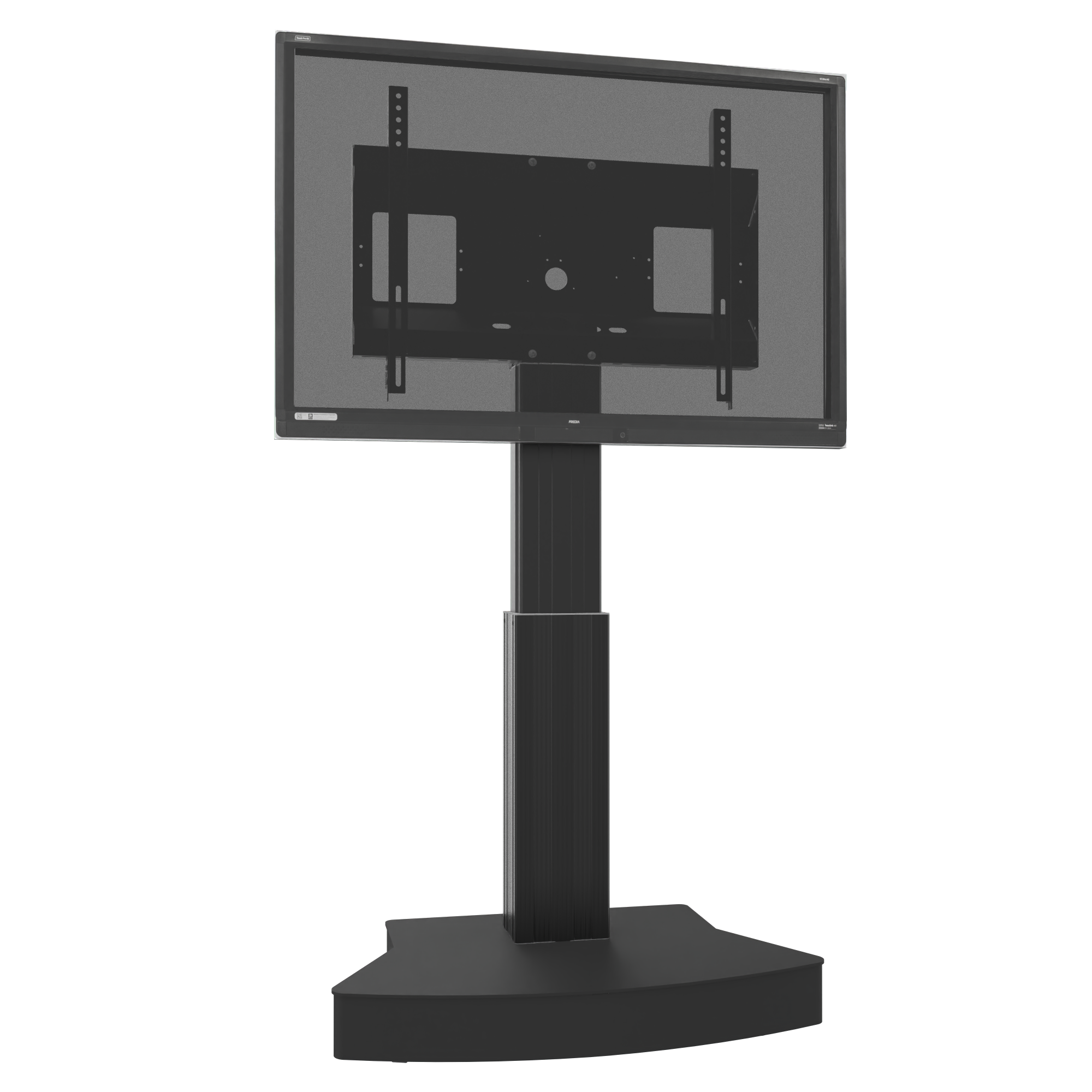 Elektrisch in hoogte verstelbare TV standaard; monitor rolstandaard voor gebruik met (interactieve) touchscreen displays van 42"-100" schermdiagonaal met 50 cm slag. Het systeem is onder meer ontwikkeld voor gebruik in universiteiten, hotels en bedrijven. De mooi gevormde mobiele standaard biedt een hoogteverstelling van 50 cm - de instelling gebeurt elektrisch. De mobiele monitorhouder maakt het gebruik van elk touchscreen-display met een schermgrootte van 42"-100" in schoolbordmodus mogelijk. De uitrusting met vier met rubber beklede lichtlopende rollen zorgt ervoor dat het systeem eenvoudig tussen verschillende ruimtes kan worden verplaatst en maakt de trolley wederom de ideale oplossing voor werkomgevingen waar een hoge mate van flexibiliteit vereist is. Voor nog meer gebruikscomfort maakt de standaard de aansluiting van talrijke accessoire-opties mogelijk. Het product wordt gedemonteerd geleverd in drie verpakkingseenheden. Elke doos kan per pakketdienst worden verzonden.