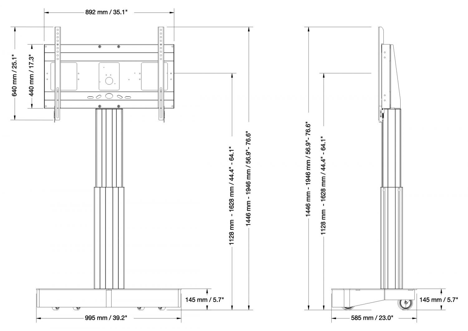 Elektrisch in hoogte verstelbare verrijdbare standaard voor monitoren en tv, slag 50 cm