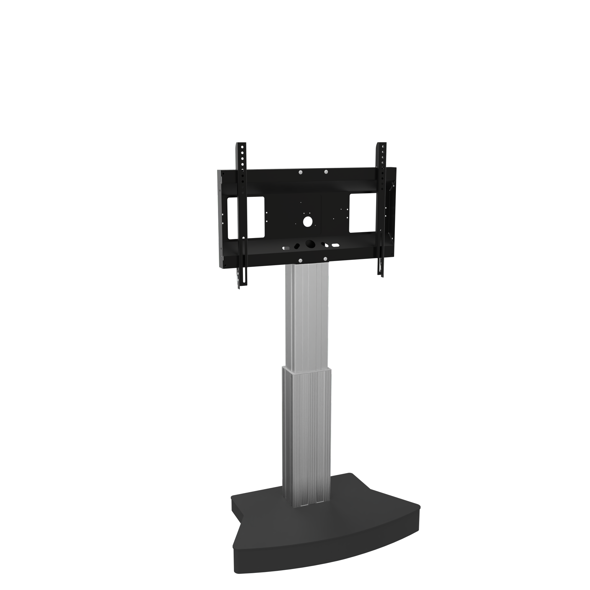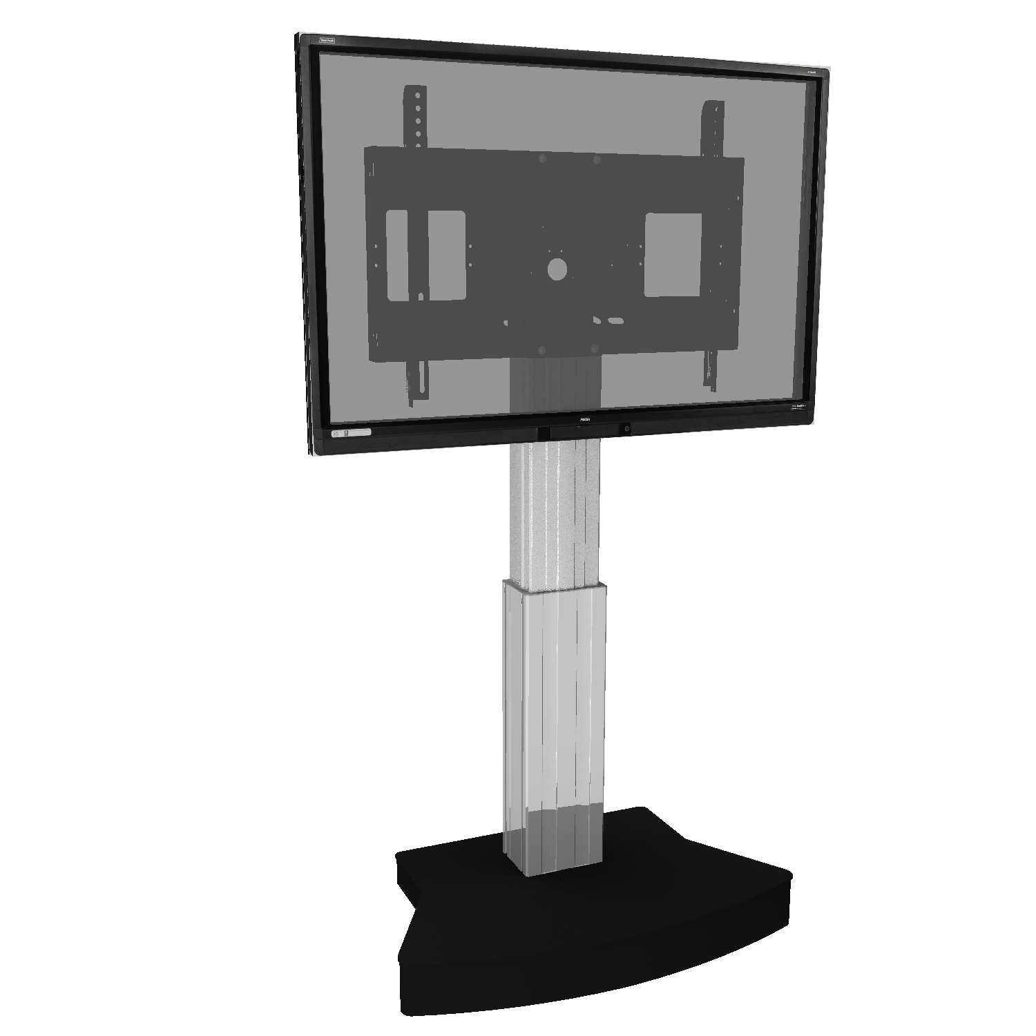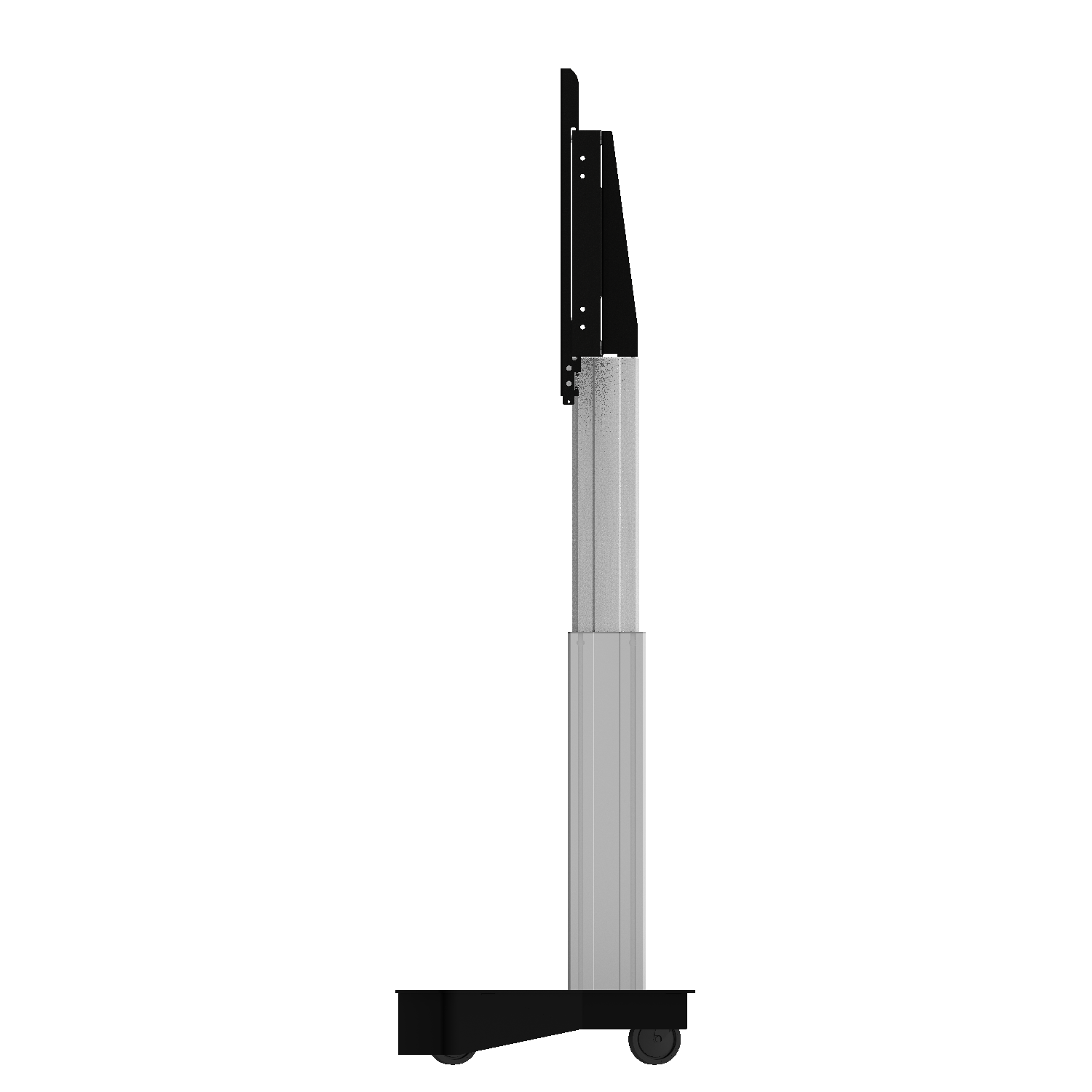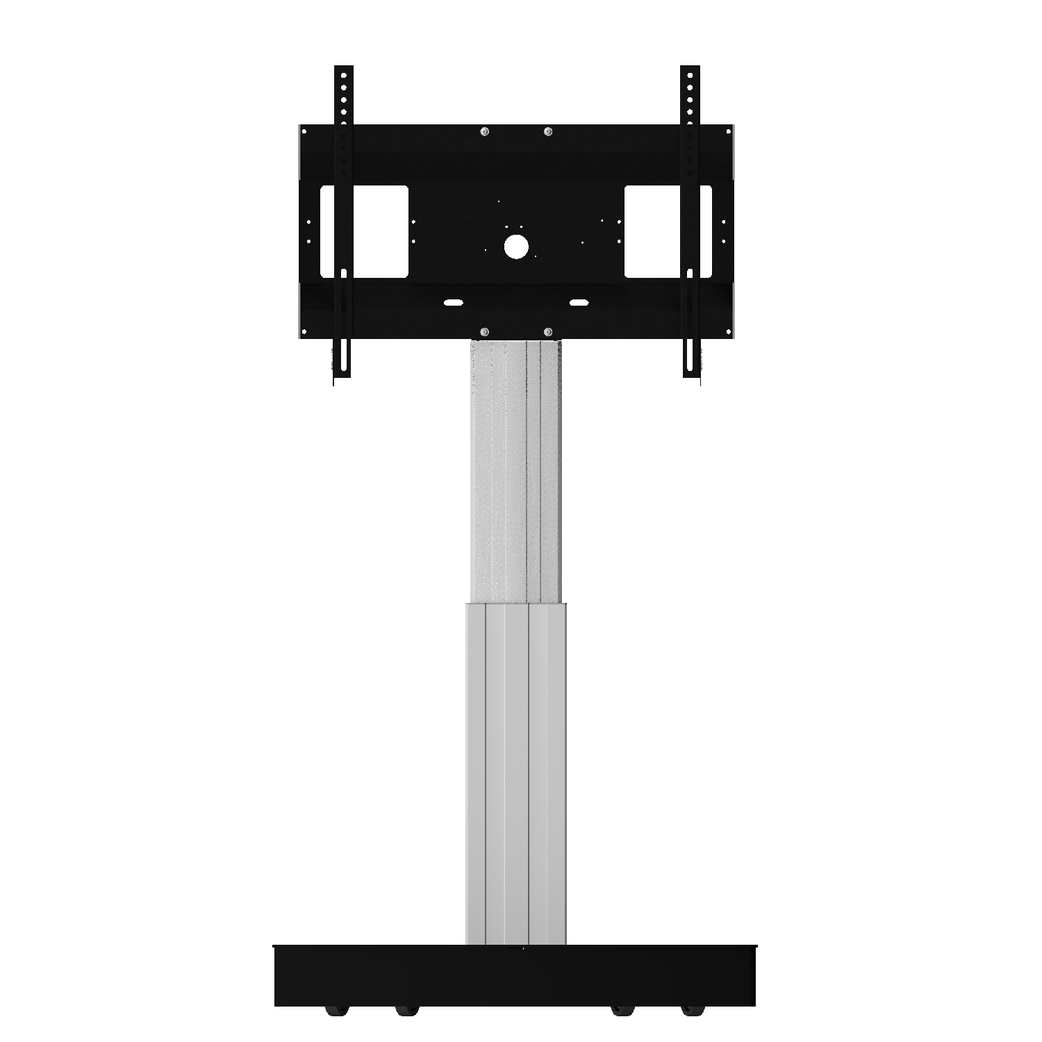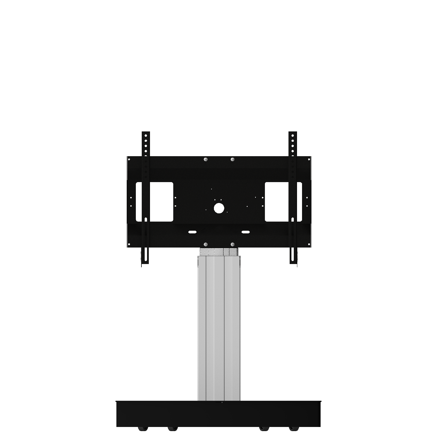 Elektrisch in hoogte verstelbare TV standaard; monitor rolstandaard voor gebruik met (interactieve) touchscreen displays van 42"-100" schermdiagonaal met 50 cm slag. Het systeem is onder meer ontwikkeld voor gebruik in universiteiten, hotels en bedrijven. De mooi gevormde mobiele standaard biedt een hoogteverstelling van 50 cm - de instelling gebeurt elektrisch. De mobiele monitorhouder maakt het gebruik van elk touchscreen-display met een schermgrootte van 42"-100" in schoolbordmodus mogelijk. De uitrusting met vier met rubber beklede lichtlopende rollen zorgt ervoor dat het systeem eenvoudig tussen verschillende ruimtes kan worden verplaatst en maakt de trolley wederom de ideale oplossing voor werkomgevingen waar een hoge mate van flexibiliteit vereist is. Voor nog meer gebruikscomfort maakt de standaard de aansluiting van talrijke accessoire-opties mogelijk. Het product wordt gedemonteerd geleverd in drie verpakkingseenheden. Elke doos kan per pakketdienst worden verzonden.
