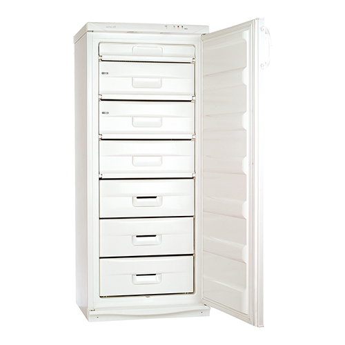 Exquisit- Met 3 hoge laden 3 vakken met klep en een extra vriesvak voor ijsblokbakjes thermostatisch instelbaar. Met controlelampjes en invriesschakelaar H cm:145 L cm:60 B cm:60 V:230 Lit.:240 W:165