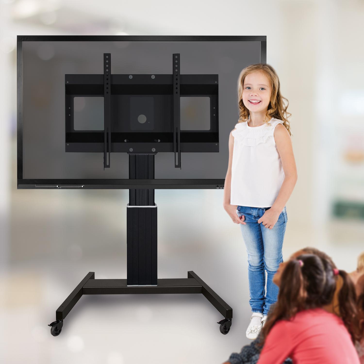 Elektrisch in hoogte verstelbare tv-trolley, verrijdbaar monitorstatief, 28 cm slag