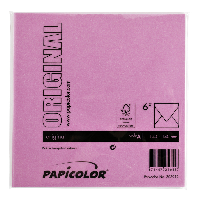 Envelop Papicolor 140x140mm felroze pak à 6 stuks