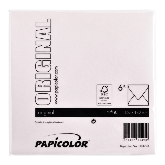 Envelop Papicolor 140x140mm lichtroze pak à 6 stuks