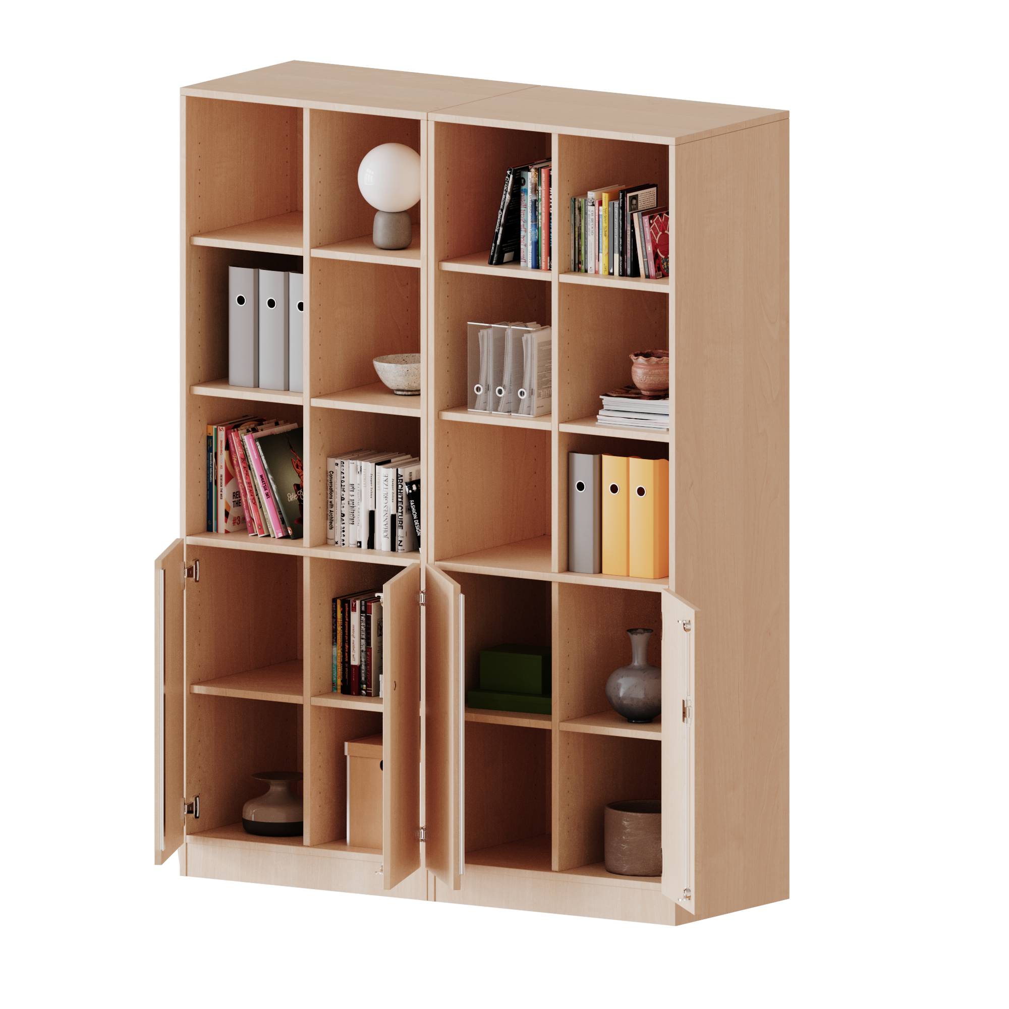 De evo180 planken en kasten in verschillende hoogtes en breedtes vormen een belangrijk onderdeel van ons evo180 wandkastenprogramma. De achterwand is ontworpen als een zichtbare achterwand, dus alle evo180 losse planken of wandplanken zijn ook geschikt als ruimteverdelers. Het onderstel heeft een hoogte van 81 mm en is aan de onderzijde voorzien van vloervriendelijke kunststof glijdoppen. Alle kasten zijn gemaakt van gemelamineerde E1-fijnspaanplaat, die FSC-gecertificeerd en formaldehydevrij is. We gebruiken bijzonder robuuste 2 mm dikke ABS-randen, die bij hoge temperaturen stevig worden verlijmd. Selecteer het gewenste decor uit ons decorpalet. De legborden zijn verstelbaar in stappen van 32 mm. Onze hoogwaardige plankdragers hebben een "uittrekstop" die voorkomt dat planken met inhoud uit de plank of kast glijden. Dankzij de 270° openende scharnieren kunnen de deuren tegen de opbouw geplaatst worden. Ze kunnen worden afgesloten met een slot. Op de deuren zit een stoflip. Stel je gewenste kledingkast samen door je keuze te maken uit de aangeboden varianten. De praktische ErgoTray bakken zijn verkrijgbaar in 2 hoogtes - er zijn hoge en platte bakken. Als onderdeel van de evo180-serie bieden we veel planken en kasten met ErgoTray-dozen. Je vindt er ook kasten en planken zonder bakken, maar dan in de juiste breedtes, zodat alles bij elkaar past. De dressoirs tot 3,5 ordnerhoogte zijn naar keuze allemaal verkrijgbaar met onderstel, verrijdbaar of met stabiele metalen meubelpoten. De verrijdbare dressoirs hebben 4 zwenkwielen, waarvan 2 vergrendelbaar. De ErgoTray dozen zijn verkrijgbaar in verschillende kleuren.