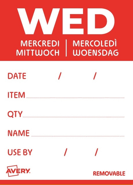 Etiket Avery HACCP woensdag-rood 40x56mm 500st