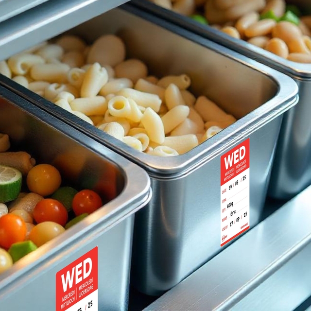 Gekleurde voedsel-dagetiketten zijn essentieel voor efficiënt voorraadbeheer in de horeca. Ze maken het mogelijk om de bereidings- of openingsdatum van voedsel nauwkeurig te volgen. Dankzij een kleurcode per dag identificeert men in één oogopslag de producten die met voorrang gebruikt moeten worden. Dit helpt voedselverspilling te beperken en zorgt voor een optimaal voedselgebruik. Met deze labels voldoet men aan de HACCP-normen en vergemakkelijkt men de controle van de houdbaarheidsdatum. Dankzij de afneembare lijm zijn ze eenvoudig aan te brengen en te verwijderen. Ze kunnen worden gebruikt op alle soorten verpakkingen. In de keuken verbeteren ze de communicatie tussen teams door verwarring over de versheid van de producten te voorkomen. Het gebruik van daglabels betekent dagelijks tijd besparen en tegelijkertijd servicekwaliteit garanderen. Door te investeren in dit efficiënte etiketteringssysteem optimaliseren horeca-eigenaren zowel hun organisatie als hun winstgevendheid.