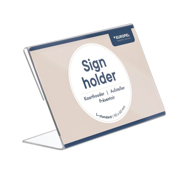Kaarthouder Europel L-standaard 90x60mm liggend acryl