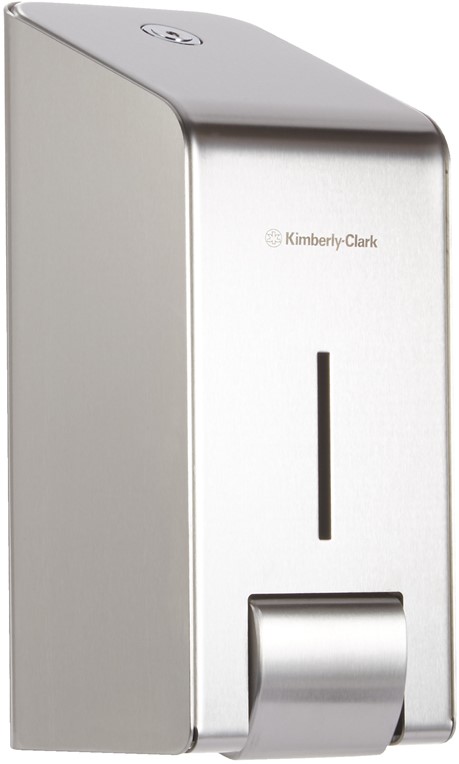 Kimberly Clark 8973 Handreiniger Dispenser. Elegant hoge kwaliteit en duurzaamheid ideaal voor toiletruimtes van kantoren en hotels voor de bevordering van een luxe uitstraling. Vervaardigd uit roestvrij staal van 2 mm dik. Geschikt voor gebruik met de Kleenex Vloeibare Hand en Reinigers - assortiment flacons van 1 liter