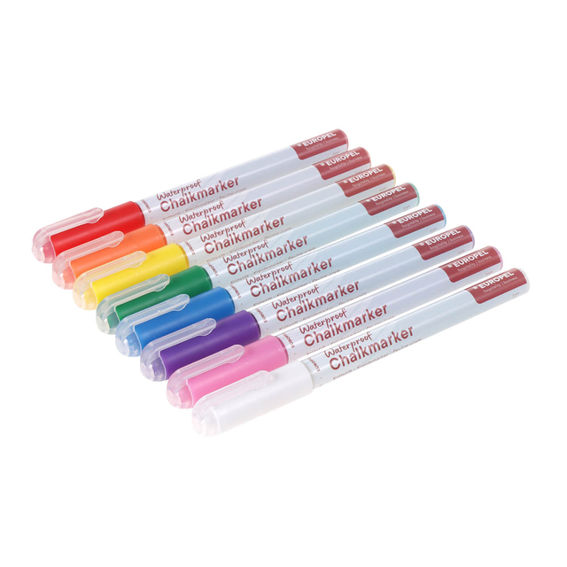 * Ontdek de watervaste krijtstiften 1-3mm in een 8 kleuren assortiment etui, perfect voor al je creatieve projecten. * Deze set bevat 8 levendige kleuren: rood, paars, blauw, oranje, roze, geel, groen en wit. * Ideaal voor het maken van opvallende borden, raamdecoraties en kunstwerken. * De 1-3mm punt maakt perfecte smalle en strakke lijnen mogelijk, afhankelijk van de hoek waarin je de stift houdt. * De watervaste inkt zorgt ervoor dat je ontwerpen helder blijven, zelfs bij blootstelling aan water. * Dit maakt ze ideaal voor gebruik op buitenborden, ramen en andere oppervlakken die kunnen worden blootgesteld aan weersomstandigheden. * Je ontwerpen en boodschappen blijven helder en duidelijk, ongeacht de omstandigheden. * Deze stiften zijn gemaakt van niet-giftige materialen, snel drogend en geurloos, wat ze veilig en gebruiksvriendelijk maakt. * Of je nu een kleurrijk menu voor een café wilt maken, een opvallend raamdisplay wilt ontwerpen, of gewoon wil experimenteren met verschillende kleuren in je kunstwerken, deze set heeft alles wat je nodig hebt. * De intense, dekkende kleuren zorgen ervoor dat je ontwerpen echt tot leven komen.