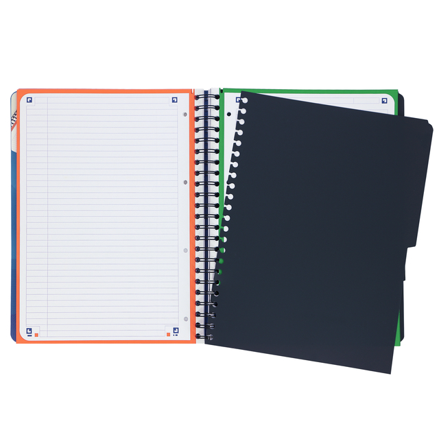 * De Oxford Projectbooks zijn ideaal voor het gebruik tijdens projecten of verschillende vakken. * Er zijn 3 zwarte verplaatsbare tabbladen om notities per onderwerp of project makkelijk te verdelen en terug te vinden. * Het vaste tabblad voorin bevat Scribzee info en een insteekvak voor het opbergen van losse documenten. * Door de vier verschillende gekleurde secties kan voor ieder project of vak een andere kleur gebruikt worden. * Dankzij de tags op de pagina's kunnen aantekeningen eenvoudig worden gescand met de Scribzee app en digitaal opgeslagen. * Bewaar en deel uw notities als pdf. * Door het hoge kwaliteit Optik Paper kun je secuur je notities en huiswerk maken en deze zonder inktvlekken inleveren bij de leraar. * Uitscheurbare vellen om op te bergen in ordner of ringband. * Hoge kwaliteit papier, extra glad en extra wit. * Het papier is gecertificeerd met EU Ecolabel (garandeert dat in de hele levenscyclus van het papier de milieubelasting laag is).