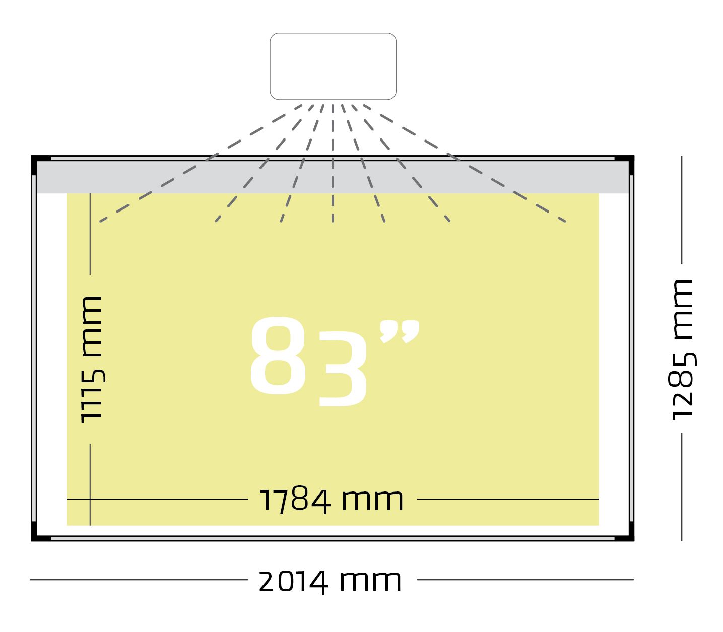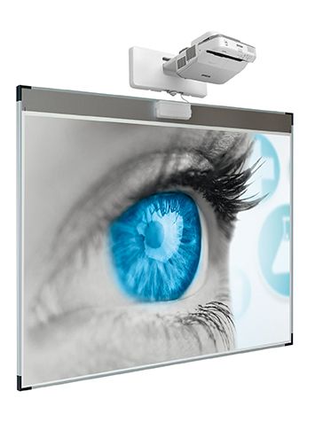 Projectiebord voor interactieve finger-touch projectoren (16:10), zoals bijv. Epson EB-695Wi en EB-725Wi. Zeer dunne en lichte constructie met vlak opliggend aluminium profiel. Low Gloss emailstaal met grijze strook voor plaatsing touch sensor. 31 cm afleggoot optioneel. Magneethoudend en droog uitwisbaar.