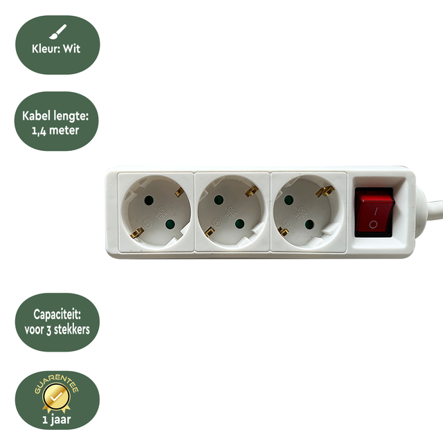 * Nooit meer een stopcontact te kort! Deze BRASQ Stekkerdoos, in witte kunststof uitvoering, met 3 stopcontacten is een echte handige must-have en een onmisbaar hulpmiddel in het moderne huishouden en op kantoren. Sluit al je elektrische apparaten aan, zoals tv's, huishoudelijke apparaten, gadgets en (spel)computers aan op deze 3-voudige stekkerdoos met schakelaar. De stekkerdoos met 3 sockets, die geschikt is voor binnenshuis gebruik, is voorzien van geaarde stopcontacten en een hoofdstekker met randaarde. De stekkerdoos is direct klaar om te gebruiken en geschikt voor geaarde en niet-geaarde apparaten. Met zijn handige aan-uit schakelaar kun je gemakkelijk de toevoer van elektriciteit regelen, waardoor je zelf ook het energieverbruik in huis of kantoor bepaald. De schakelaar is uitgerust met verlichting, zodat je ook in het donker duidelijk kunt zien of de schakelaar is ingeschakeld of niet. Door de handige schuine plaatsing van de stopcontacten kunnen er makkelijker haakse stekkers op worden aangesloten. * De stekkerdoos met schakelaar voldoet aan alle veiligheidseisen die betrekking hebben op dit product. Hij is voorzien van een ROHS, TUV GS en CE certificaat. * De contactpunten zijn voorzien van kinderbeveiliging. Door het gepatenteerde systeem is het niet mogelijk om voorwerpen in de stopcontacten te steken. * Overbelasting van een stekkerdoos kan leiden tot oververhitting en zelfs brandgevaar. Daarom is het cruciaal om te weten wat het maximale vermogen is dat de stekkerdoos aankan en deze limiet niet te overschrijden. * De zekering of overspanningsbeveiliging beschermt de aangesloten apparaten tegen piekspanningen en kortsluitingen. * Bovendien is het belangrijk om stekkerdozen regelmatig te controleren op tekenen van slijtage, beschadiging of loszittende onderdelen. * Met de BRASQ Stekkerdoos haal je dus kwaliteit en veiligheid in huis! * Afmetingen: 18 x 5 x 4 cm (lxbxh) * Capaciteit: 3 stekkers * Materiaal: Kunststof * Hoofdschakelaar: Aan/uit schakelaar * Voeding: Netstroom * Hoofdstekker: Randaarde * Stopcontact: Schuko Type F (randaarde) * Aansluiting: 3-polig * Max. belasting: 3600W Nominale stroom: 230V/16A * Draaddikte: 3 x 1,5mm * Kinderbeveiliging: Ja * Kabellengte: 1,4 M * Keurmerken: ROHS, TUV GS en CE certificaat * Garantie: 1 jaar