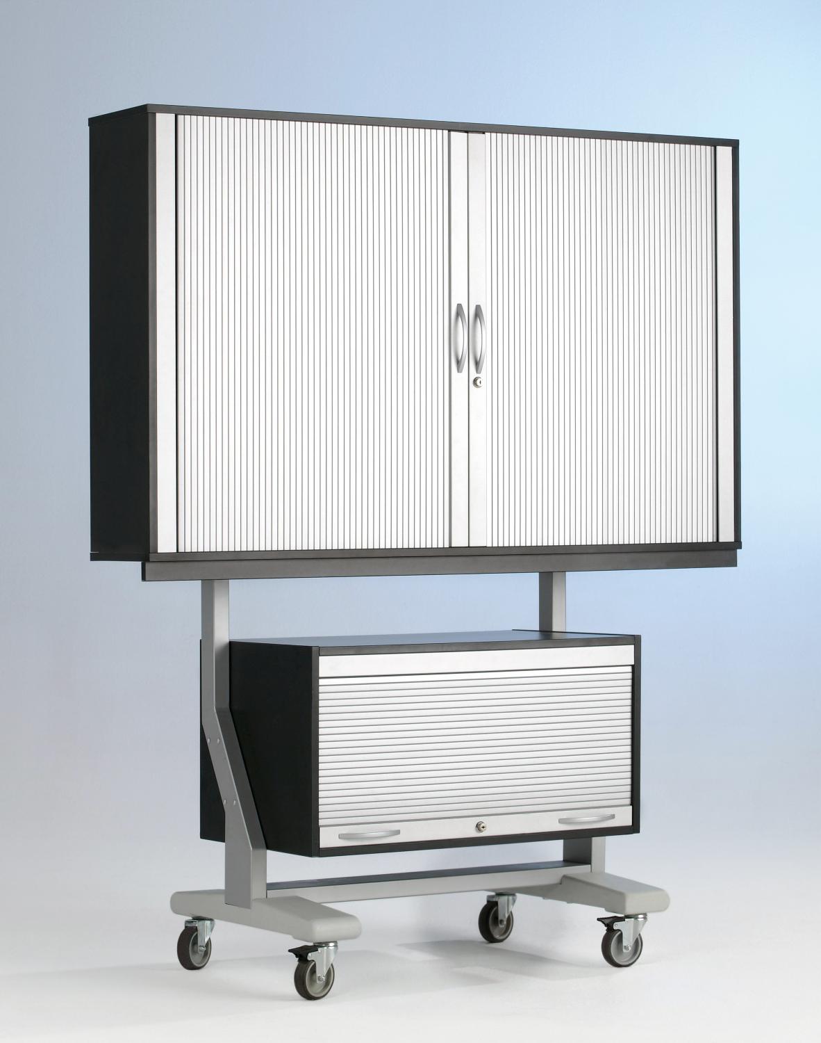 Ons ScreenCart TV-rek heeft een praktische onderkast met een afsluitbaar rolgordijn om de apparaten te beschermen tegen onbevoegde toegang. Dankzij het rolgordijn staan er geen deuren in de weg van de tv-trolley! Het tv-meubel is voorzien van een weggewerkte kabelgoot en een drievoudige stekkerdoos met 5 meter veiligheidskabel. Grote ventilatiesleuven op het tv-rek zorgen voor voldoende luchtcirculatie. De heavy-duty ScreenCart tv-trolley is dankzij de 4 zwenkwielen gemakkelijk te verplaatsen, zelfs bij gebruik van zeer zware tv' s. Om het tv-rek op zijn plaats te houden, kunnen twee van de wielen worden vergrendeld. Afgeronde kunststof voeten met een stabiliserende stalen kern van 5 mm profielbuis bieden maximale stabiliteit en stevigheid. Het stalen buisframe van de tv-trolley met rek verschuift het zwaartepunt van de tv naar een optimale veiligheidspositie.