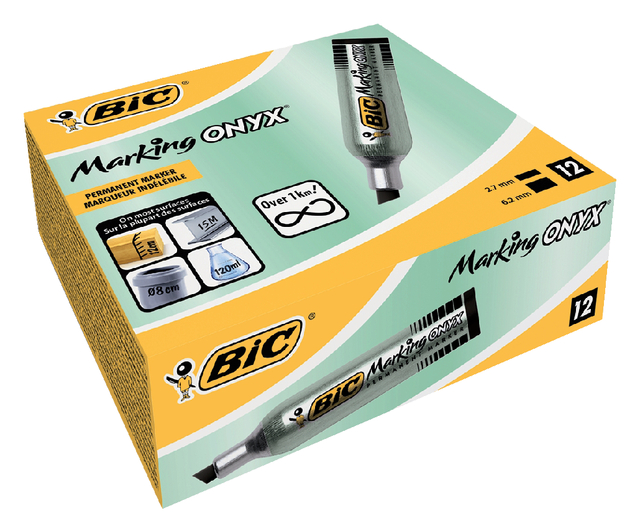 * De ONYX markers zijn hoogwaardige markers met een aluminium houder die zowel dagelijks op kantoor, als voor zware en specifieke behoeften kunnen worden gebruikt * Permanente inkt: temperatuur- en lichtbestendig. * Schrijft op bijna alle oppervlakken (buitenshuis, grof materiaal, glas). * Sterke metalen houder voorkomt inktverdamping. * Stevig en schokbestendig. * Zakformaat. * Met ronde schrijfpunt. * Schrijfbreedte 2-6mm.