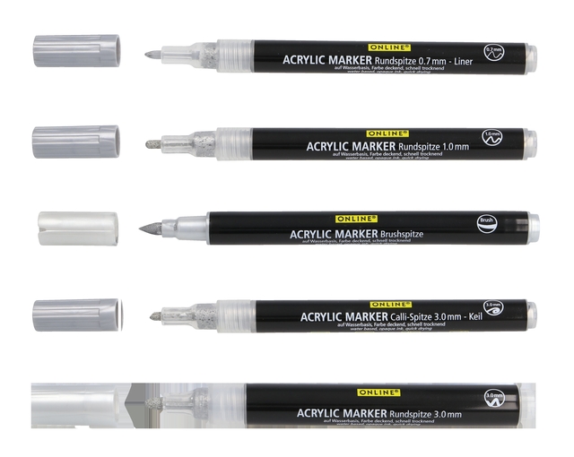 * Acrylmarker om te verven op lichte of donkere oppervlakken, ideaal voor materialen zoals linnen of verfpapier. * De ronde punt heeft een schrijfdikte van 2-3 mm.* De hoogwaardige gepigmenteerde acrylverf op waterbasis dekt goed, is lichtecht, geurloos en permanent wanneer de verf droog is. Verkrijgbaar in 26 verschillende kleuren. * Er zijn verschillende schrijfbreedtes beschikbaar. * Geschikte reservepunten (edding 5100 reservepunten) verkrijgbaar.