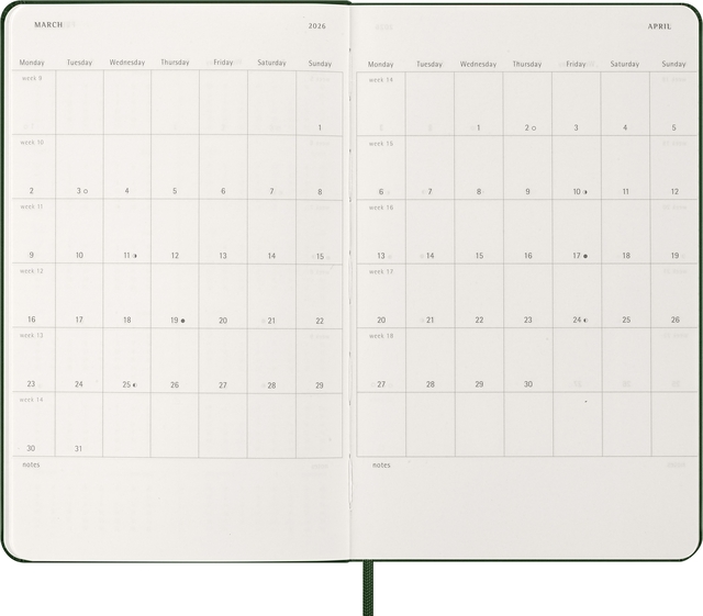 Agenda 2026 Moleskine 12M Planner Weekly 7dagen/1pagina large hc myrtle green