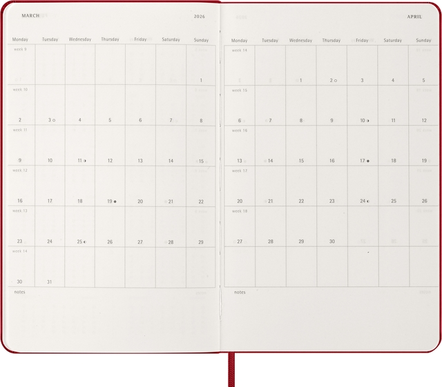 Properties "Agenda 2026 Moleskine 12M Planner Weekly 7dagen/1pagina large hc scarlet red"