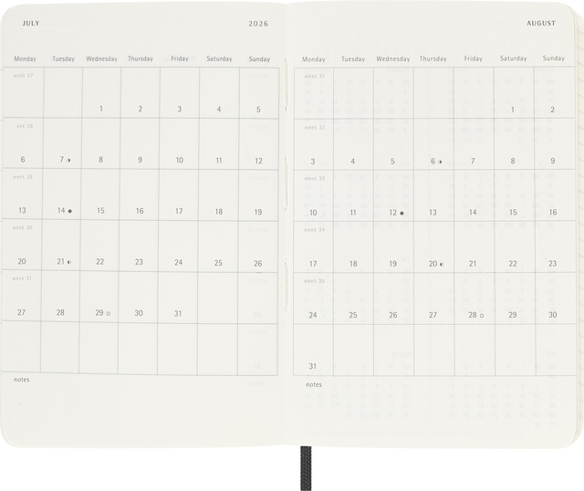 Properties "Agenda 2026 Moleskine 12M Planner Weekly 7dagen/1pagina pocket sc black"