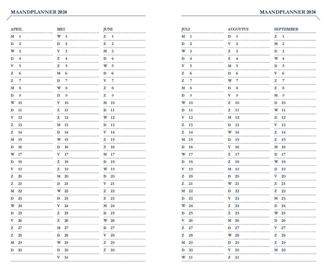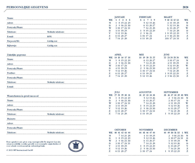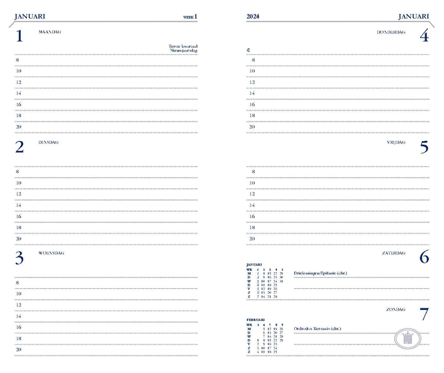 | Pagina indeling: | 7 dagen per 2 pagina's |