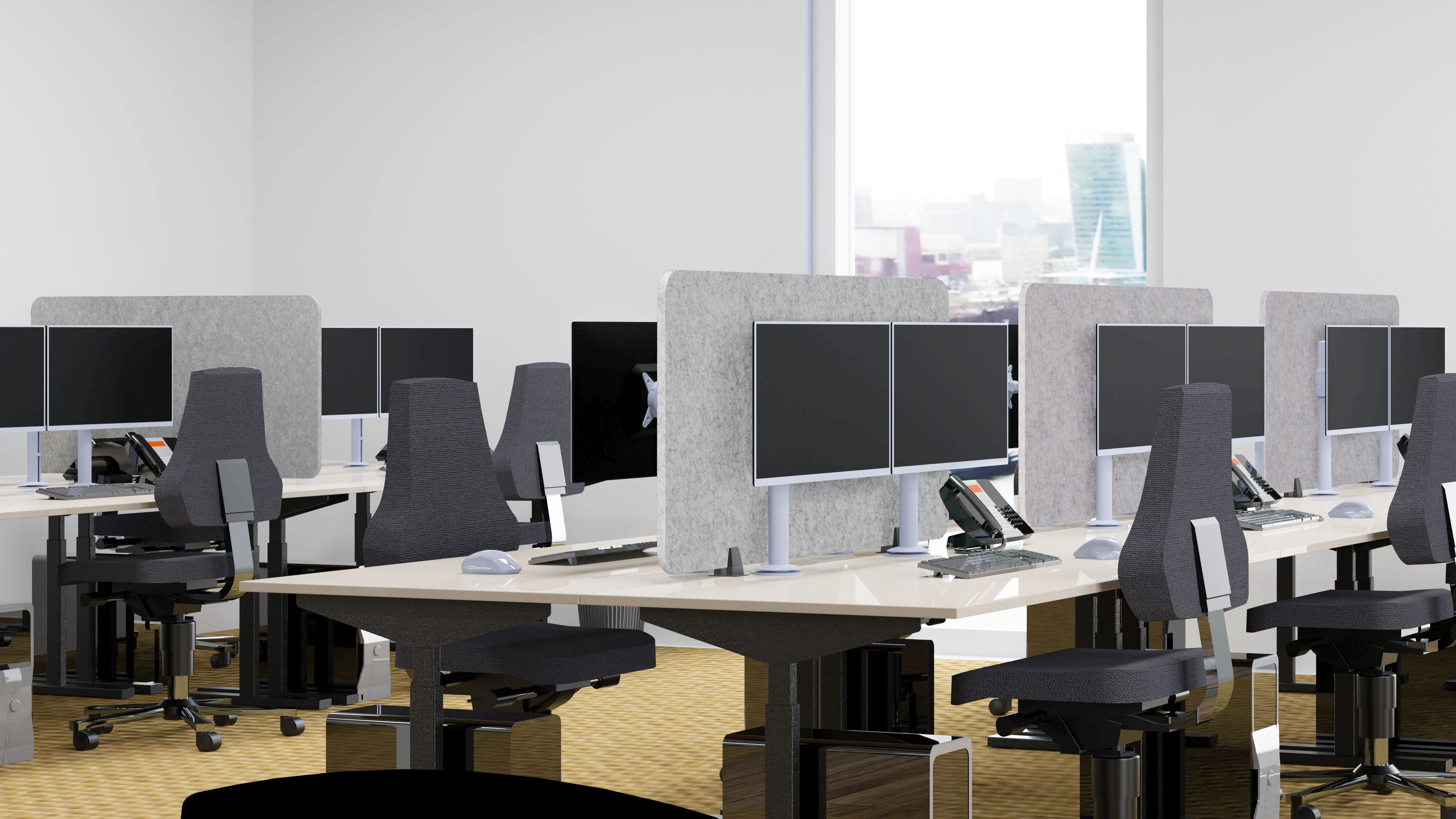 Akoestische scheidingswand in universele lichtgrijze kleur. De 2 bijgeleverde zwarte klemmen houden het paneel stevig op zijn plek en zijn geschikt voor tafeldiktes van 15 tot 34 mm. Het 18 mm dikke paneel absorbeert hinderlijke nagalm en schelle geluiden. Het vilten materiaal is duurzaam doordat het is gemaakt van gerecyclede PET-flessen. • Paneeldikte van 18 mm biedt een uitstekende geluidempingswaarde • Functioneel als prikbord • Eenvoudige klembevestiging voor zowel losse als gekoppelde bureaus • Duurzaam product door grondstof van gerecyclede PET-flessen • Licht en stijf materiaal • Glad oppervlak is eenvoudig af te nemen