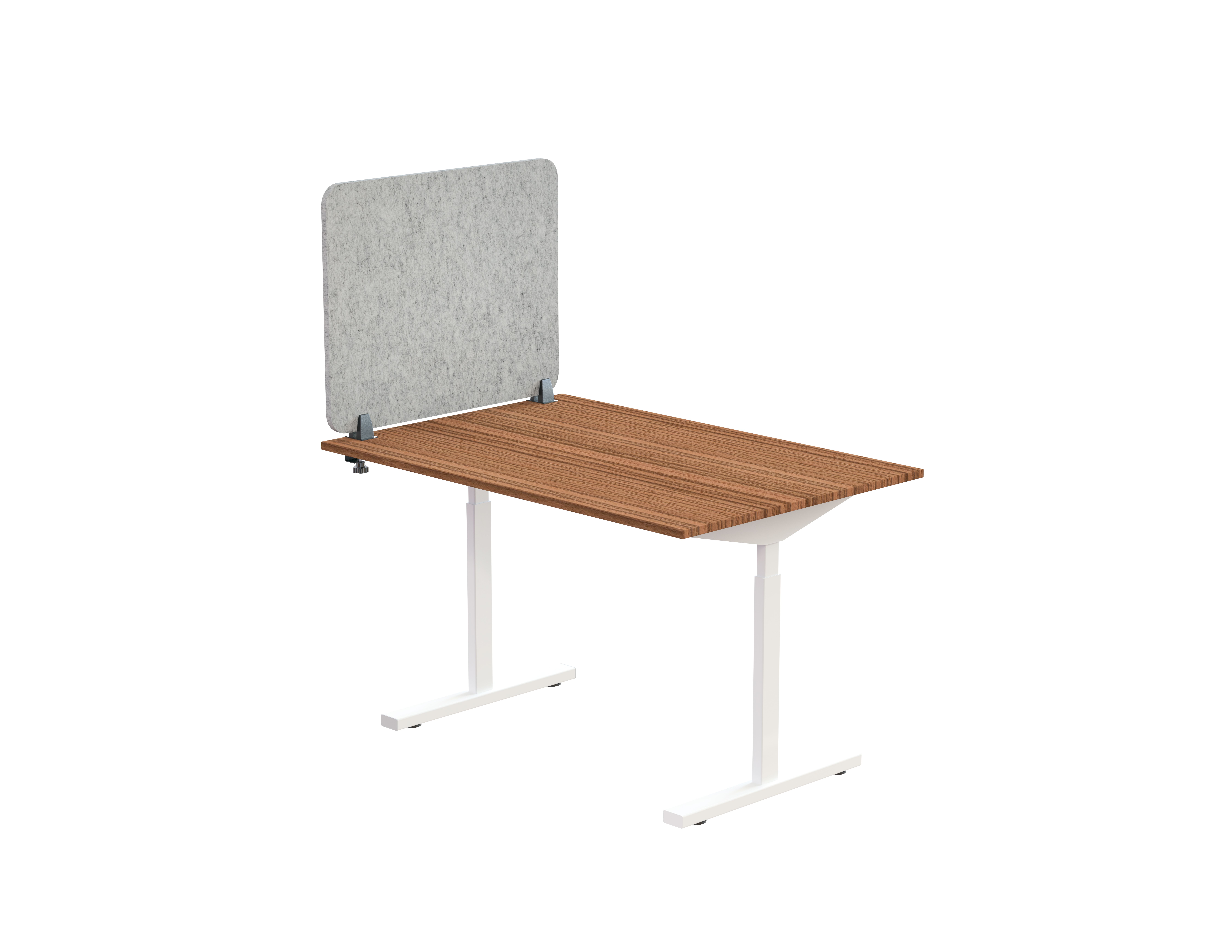 Akoestische scheidingswand in universele lichtgrijze kleur. De 2 bijgeleverde zwarte klemmen houden het paneel stevig op zijn plek en zijn geschikt voor tafeldiktes van 15 tot 34 mm. Het 18 mm dikke paneel absorbeert hinderlijke nagalm en schelle geluiden. Het vilten materiaal is duurzaam doordat het is gemaakt van gerecyclede PET-flessen. • Paneeldikte van 18 mm biedt een uitstekende geluidempingswaarde • Functioneel als prikbord • Eenvoudige klembevestiging voor zowel losse als gekoppelde bureaus • Duurzaam product door grondstof van gerecyclede PET-flessen • Licht en stijf materiaal • Glad oppervlak is eenvoudig af te nemen
