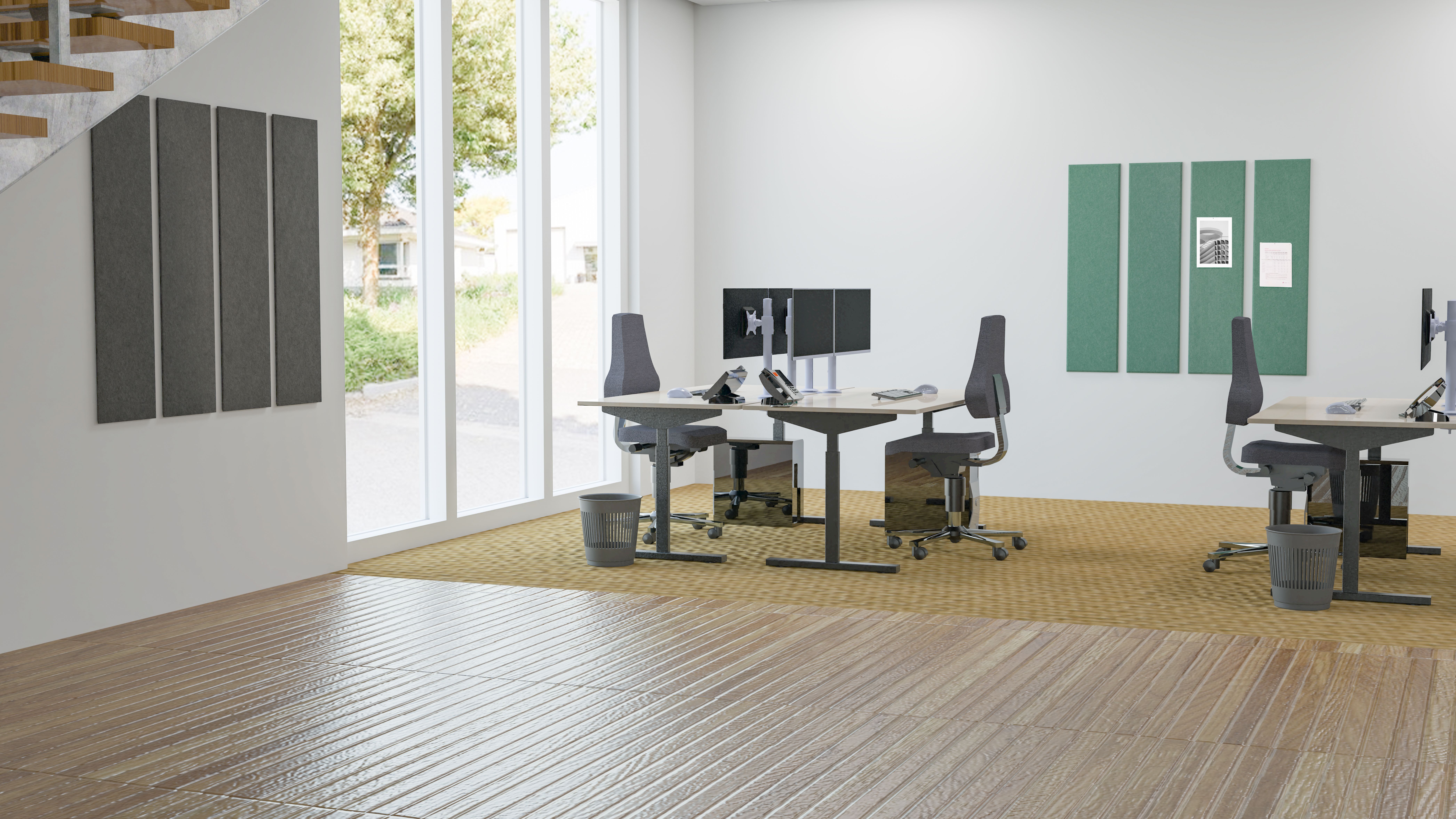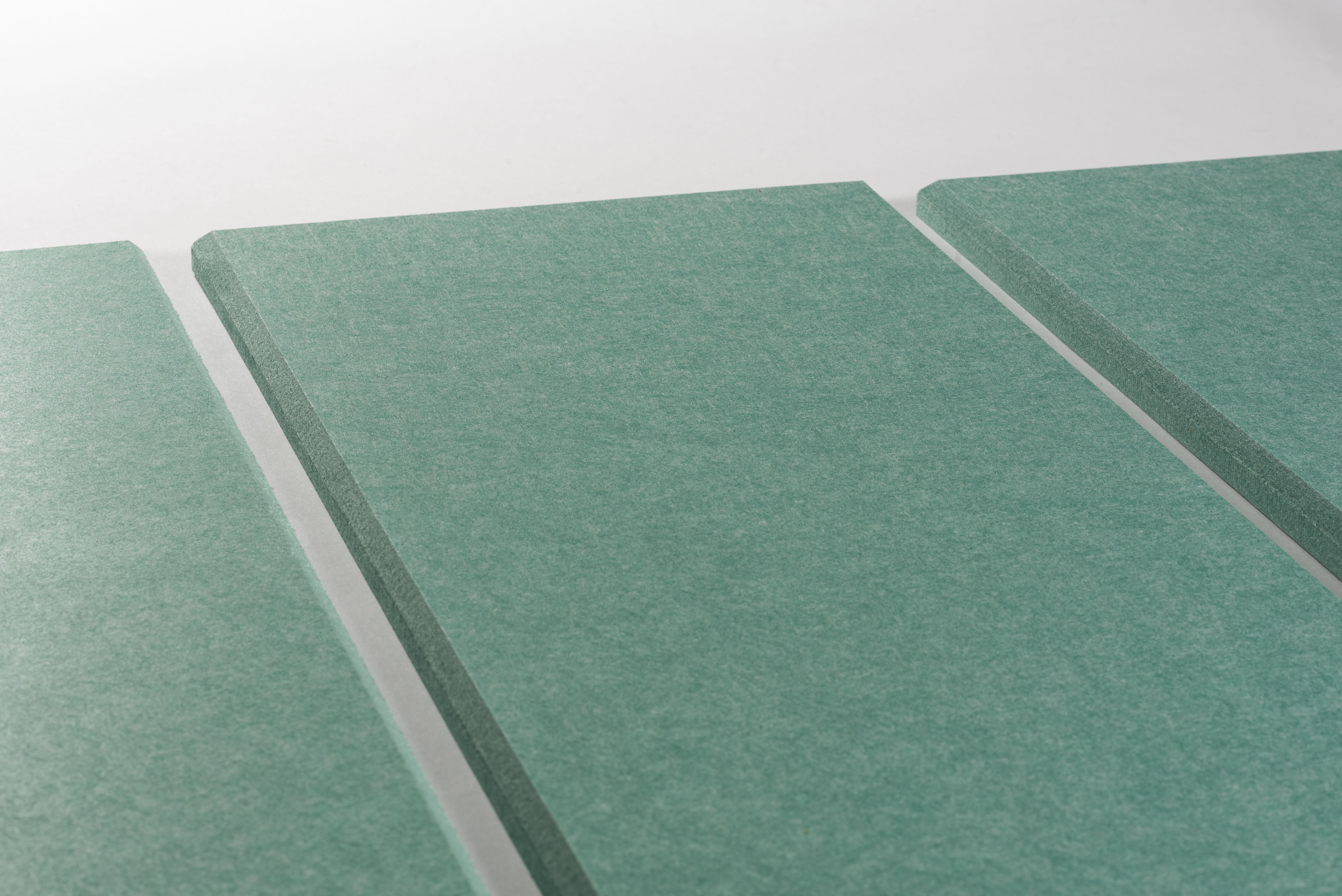 Akoestische wandbekleding bestaande uit 4 'petrol' groen vilten stroken van 30x120 cm. Het materiaal is gemaakt van gerecyclede PET-flessen en absorbeert hinderlijke nagalm en schelle geluiden. Naar wens te bevestigen met bijgeleverde afstandhouder of strak tegen elkaar. • Afgekante randen geven een 3D effect met diepte • Paneeldikte van 18 mm biedt een uitstekende geluidempingswaarde • Functioneel als prikbord • Eenvoudige tapebevestiging voor diverse ondergronden • Duurzaam product door grondstof van gerecyclede PET-flessen • Glad oppervlak is eenvoudig af te nemen