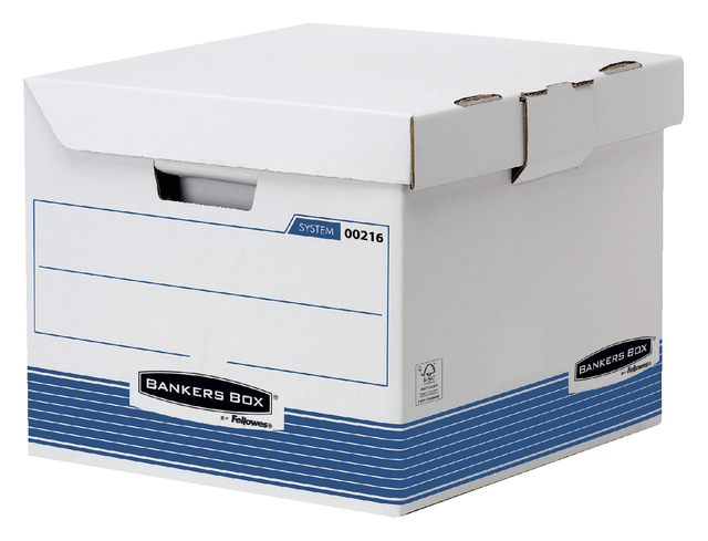 Properties "Archiefdoos Bankers Box System flip top kubus wit blauw"
