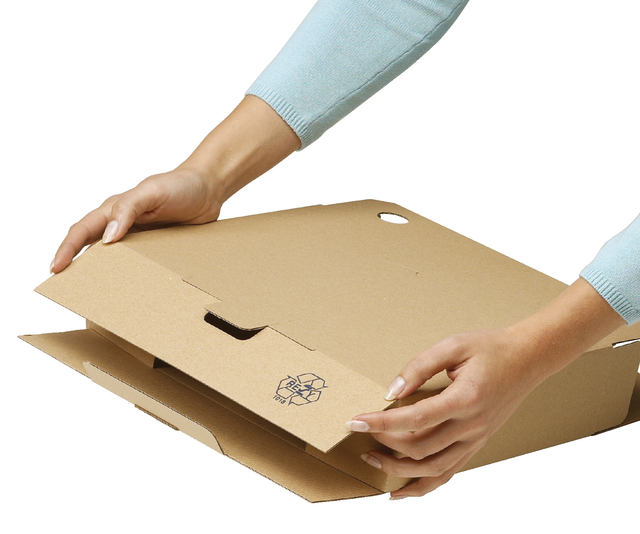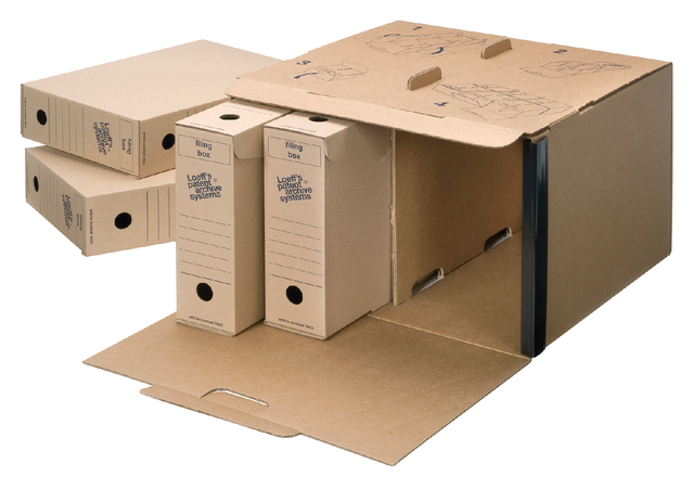 * Universeel box. * Een archiefdoos van golfkarton op A4-formaat met dubbele capaciteit. * Gemaakt van 100% recycled en recyclebaar materiaal. * PH-neutraal. * Eenvoudig in elkaar te zetten met speciale bodemsluiting. * Ook geschikt voor het archiveren van hangmappen op A4-formaat. * De inkt en de lijm bevatten geen schadelijke stoffen. * Deze box past in de Jumbo container 4004 of Jumbo Plus container 4005. * FSC-gecertificeerd. * Afmetingen 340x250x120mm.
