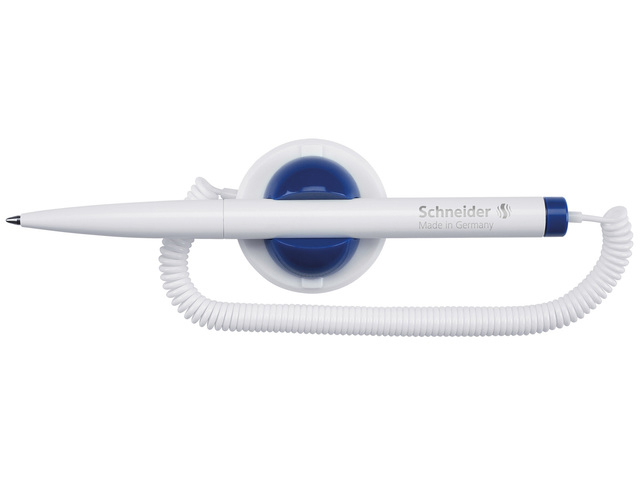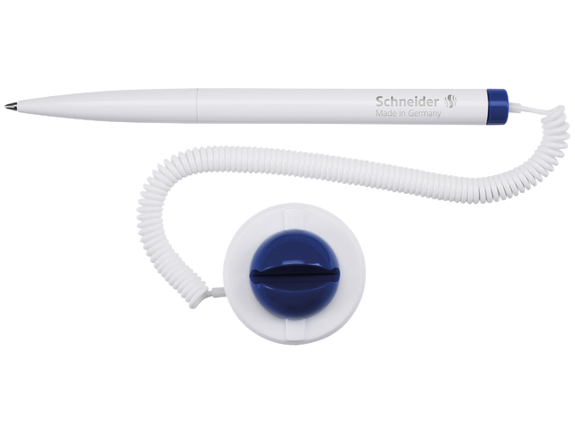 * De Klick-fix pen met vast telesnoer is ideaal voor elke plek waar altijd een balpen nodig is. * Zelfklevend met draaiknop en verwisselbare vulling. * Schneider is Emas gecertificeerd. * Documentechte inkt volgens ISO 12757-2. * Schrijfbreedte 0,4mm - kogelbreedte 1,0mm.