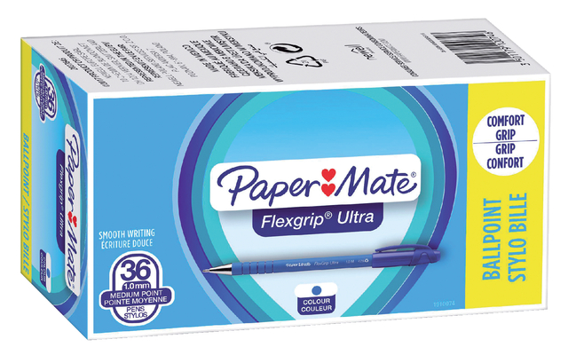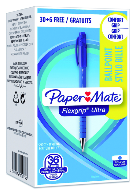 Balpen Paper Mate Flexgrip Ultra medium blauw valuepack 30+6 gratis