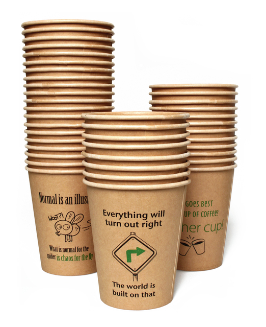 * Deze bruine (bio) kartonnen beker 237ml met verschillende teksten, zorgt voor een goede sfeer tijdens de verschillende koffie en thee momenten. * Met deze beker werken we samen naar een beter milieu. * 100% fair. * Het artikel is een SUP-product (bevat plastic).