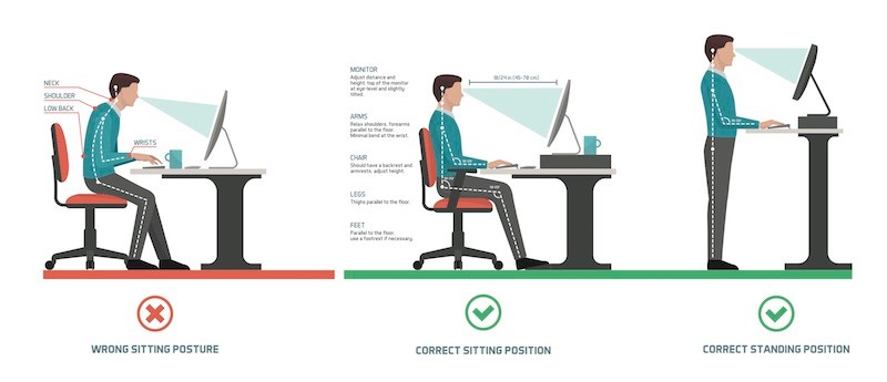 Om lichamelijke klachten te voorkomen, is het onder meer belangrijk om op correcte afstand van je computerscherm af te zitten.