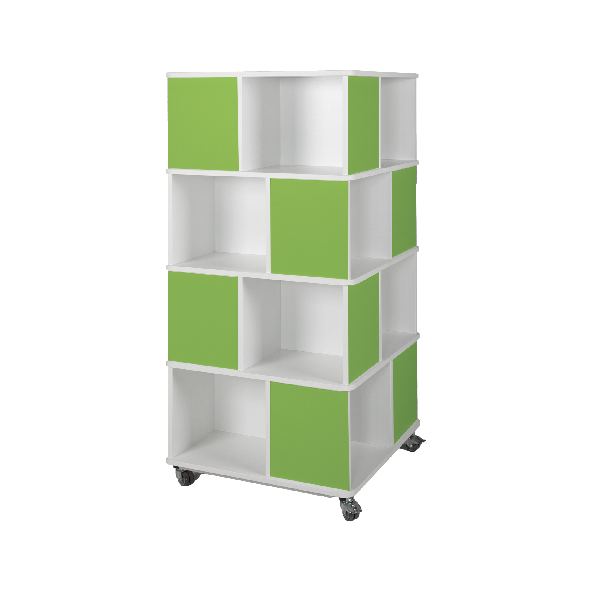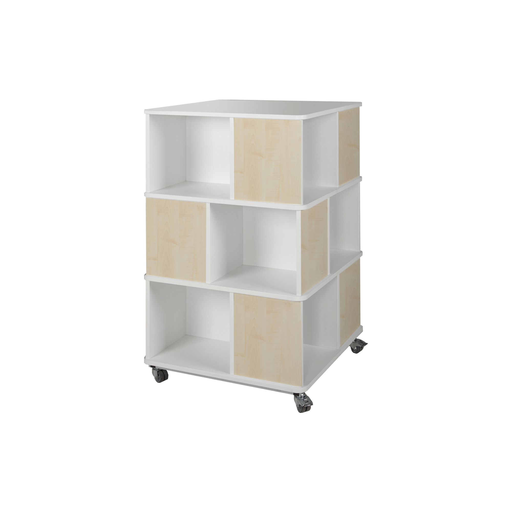 Onze boekentorens met 2 tot 5 niveaus en van 8 tot 20 open vakken in ordnerhoogte bieden genoeg ruimte om al je boeken op te bergen. Dankzij de 4 stabiele zware dubbele wielen kan de boekentoren onderweg gebruikt worden. Het kastromp en de panelen kunnen worden ontworpen in 2 decors uit ons decorpalet.