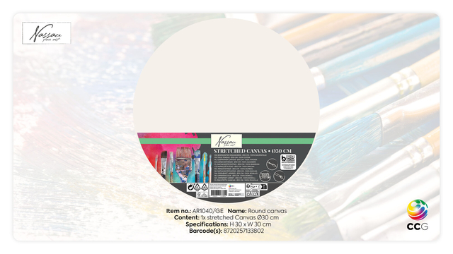 Breng je kunst tot leven met de Canvas Nassau Fine Art! Dit hoogwaardige, ronde canvas van 30 cm is vervaardigd uit 100% katoen, waardoor het de ideale ondergrond biedt voor al je schilderprojecten. Of je nu met acryl, olie of gemengde technieken werkt, deze canvas garandeert een uitstekende kleurhechting en duurzaamheid. De verpakking is FSC gecertificeerd.