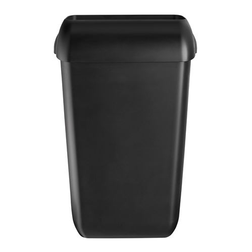 Deze elegante afvalbak is zowel staand als hangend te gebruiken. De afvalbak is voorzien van een open inworp waardoor aanraking van een klepdeksel niet mogelijk is. Door de compacte vormgeving is dit een afvalbak welke het aanzicht in iedere ruimte verhoogt. De afvalzak is volledig te verbergen. Open inworp. Net aanzicht. Hygienisch. Afmeting 560 x 337 x 225 mm. Verkrijgbaar in de kleuren zwart en wit. Tevens in een 43liter uitvoering.