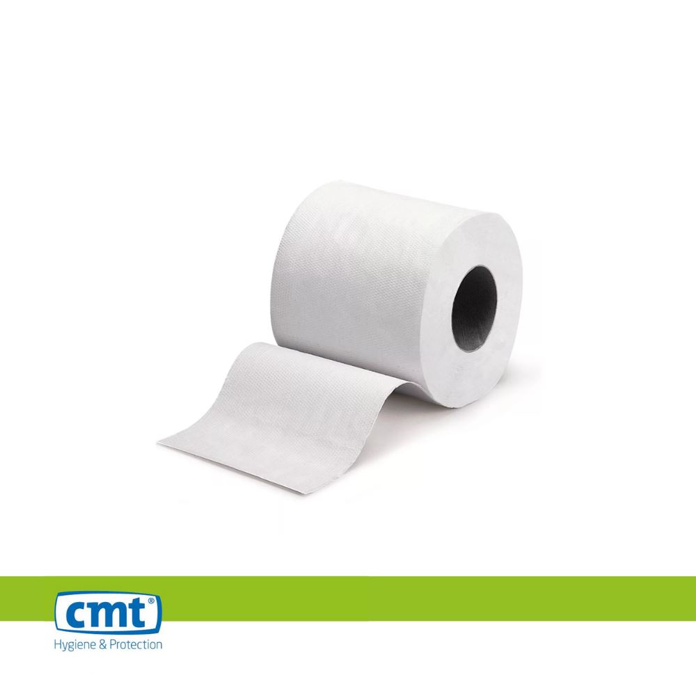 Dit superzachte CMT toiletpapier is gemaakt van 100Proc Cellulose bestaat uit 3 lagen en 250 vellen per rol. Het is verpakt per 56 rollen. Dit toiletpapier heeft een hoog absorptievermogen en zeer zachte kwaliteit. Het papier heeft een luxe uitstraling. Snel oplosbaar in koud water. Voorzien van EU Ecolabel en PEFC keurmerk. Afmeting rol: 275 x 95cm. Afmeting vel : 11x95cm. Diameter rol : 12cm. Afmeting omdoos : 770x390x190mm. Geschikt voor Pearl White en Pearl Black duo toiletrolhouders 431002 en 431052.