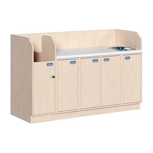 Of het nu gaat om een individuele commode of als een grote commodecombinatie - in ieder geval bieden de verschillende elementen van de commode duurzame materialen, geteste veiligheid, ergonomische afmetingen en veel opbergruimte. Aan drie zijden omringen veiligheidsopstanden het werkblad, dat is voorzien van een waterdichte coating en aan de voorzijde is afgerond voor gebruiksgemak. Dankzij de ingebouwde handgrepen en de verzonken basis kunt u dicht bij de kleedruimte komen. Als uitrusting zijn verschillende varianten van rugvriendelijke klimhulpmiddelen, lades, kinderbadjes en fonteinen verkrijgbaar. Als optie is een bijzonder waterdichte basisvariant verkrijgbaar. U kunt kiezen uit twee verschillende werkdieptes en rechts/links uitvoeringen van de kasten. Het aankleedkussen moet apart besteld worden.