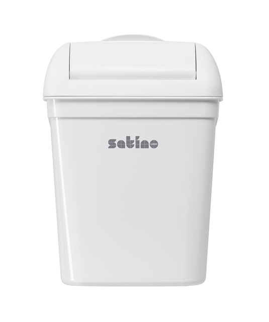 * De compacte Satino hygiënebox met een inhoud van 8 liter is geschikt voor toiletruimtes met een lage bezoekersfrequentie. * Deze afvalbak kan zowel hangend als staand worden aangebracht. * Het handige kanteldeksel zorgt voor een optimale luchtafdichting. * Gemaakt van gerecycled kunststof.