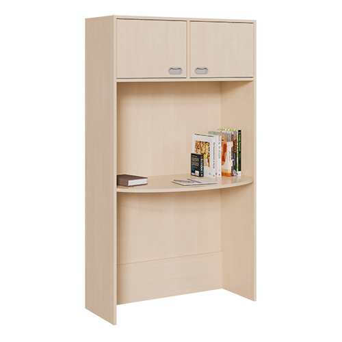 Docentenwerkplaats - afmetingen H/D: 180x40/60cm, afgerond werkblad, 2 deuren bovenaan