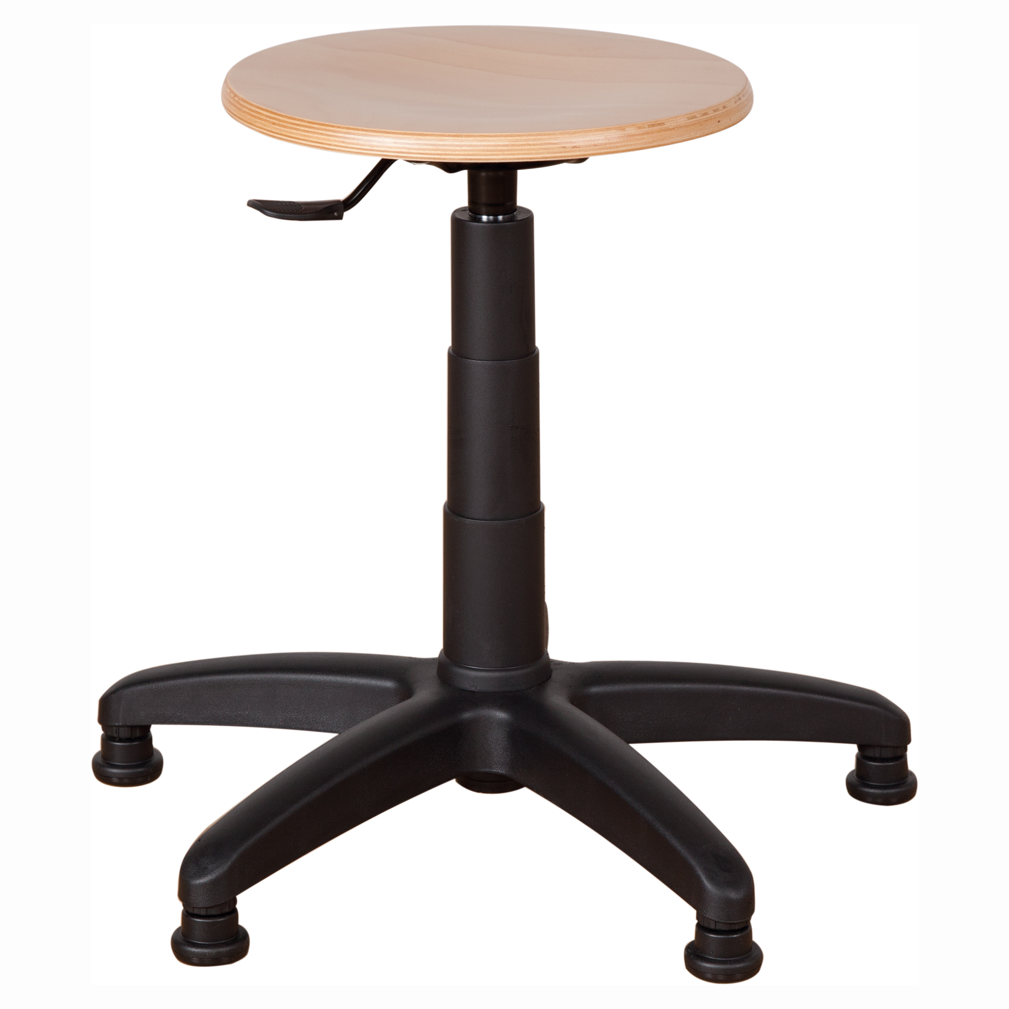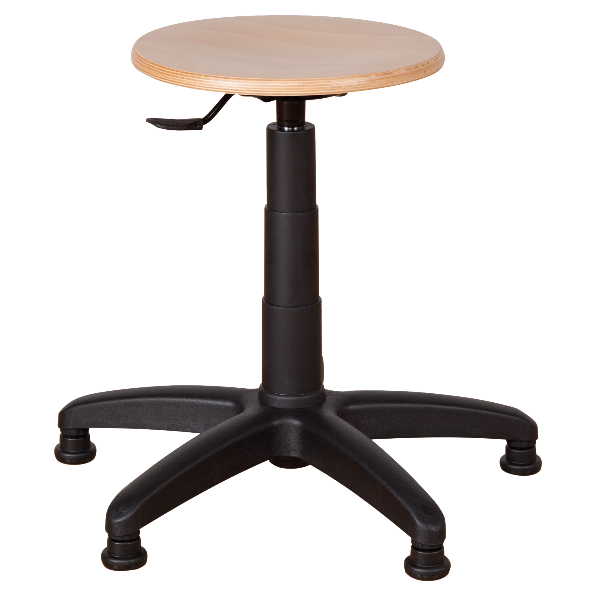 Onze draaikruk met traploze zithoogteverstelling en veiligheidsgasveer, met zijn elegante en stabiele zwarte kunststof voet, is perfect om snel en eenvoudig een zitplek te creëren. Hij past onder alle tafels en is snel bij de hand. Met zijn praktische kunststof glijders wordt ook de vloer beschermd. De zitting is gemaakt van naturel beukenhout.